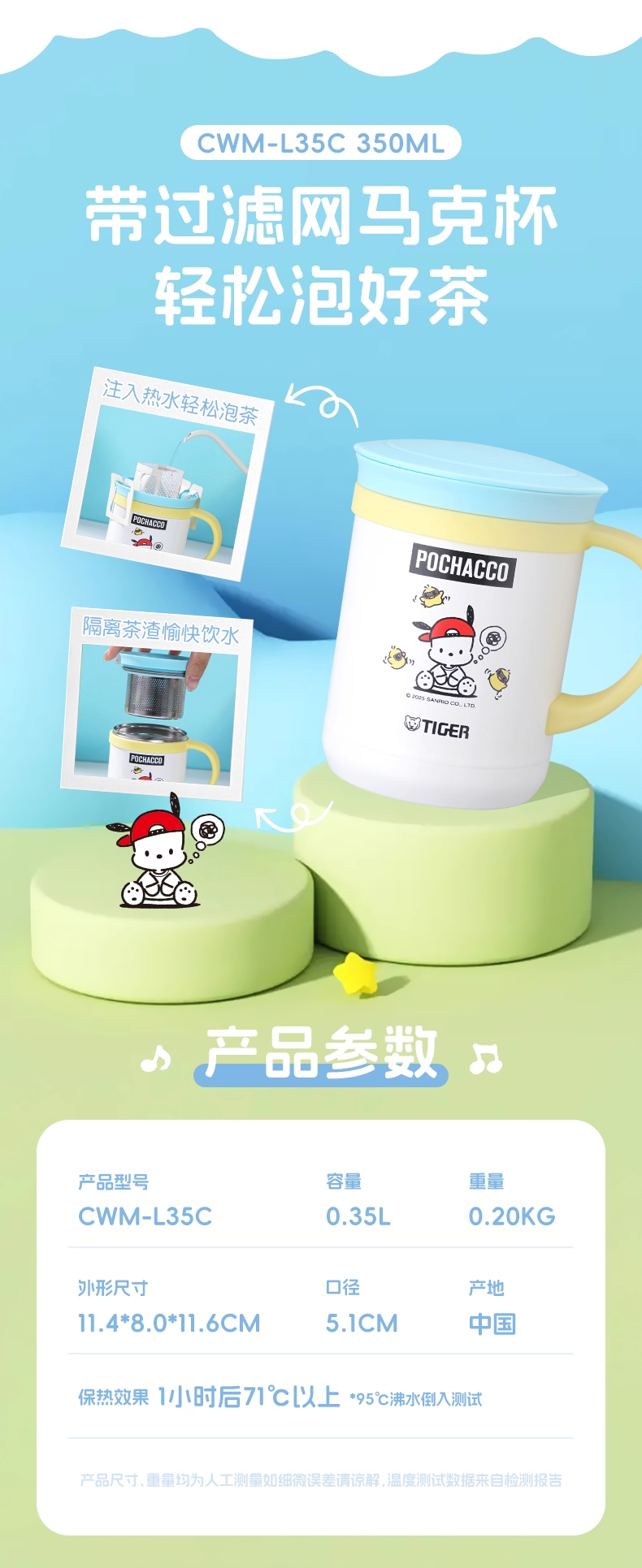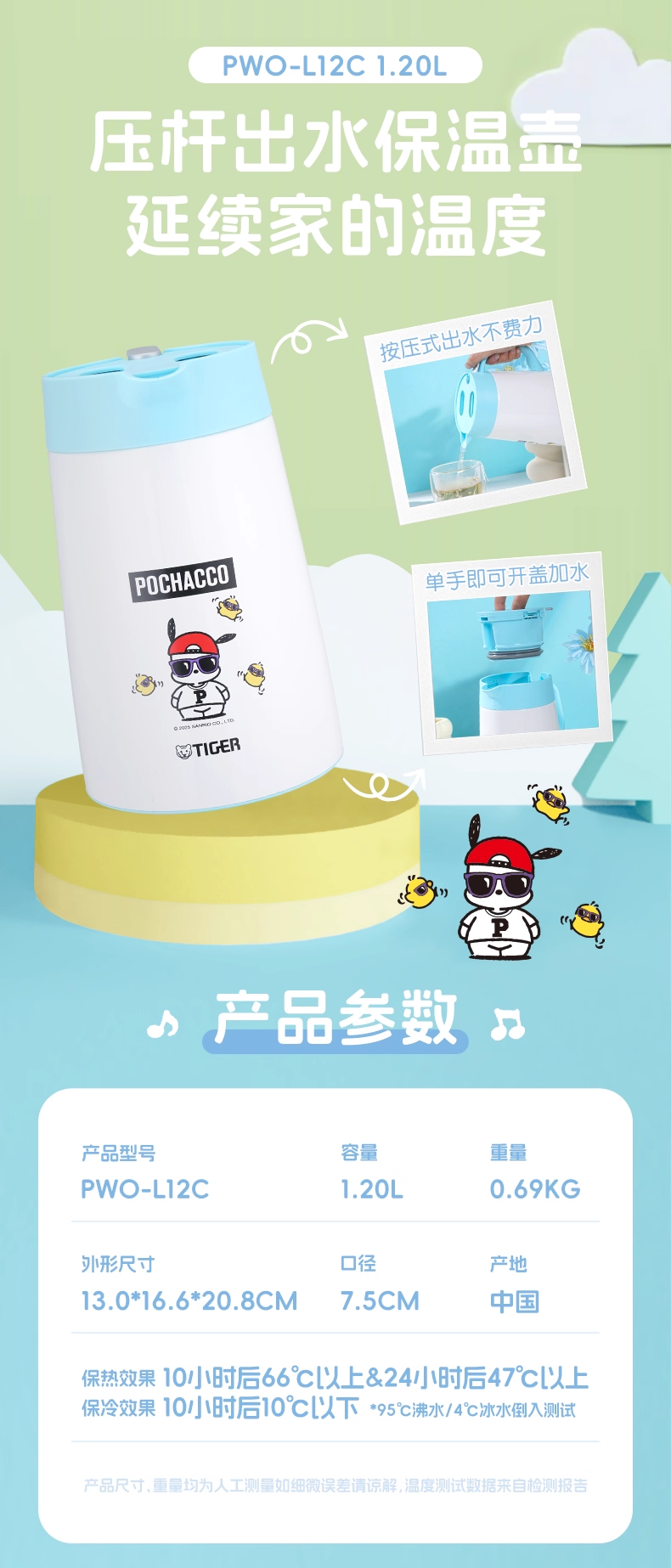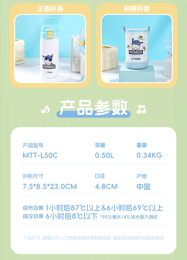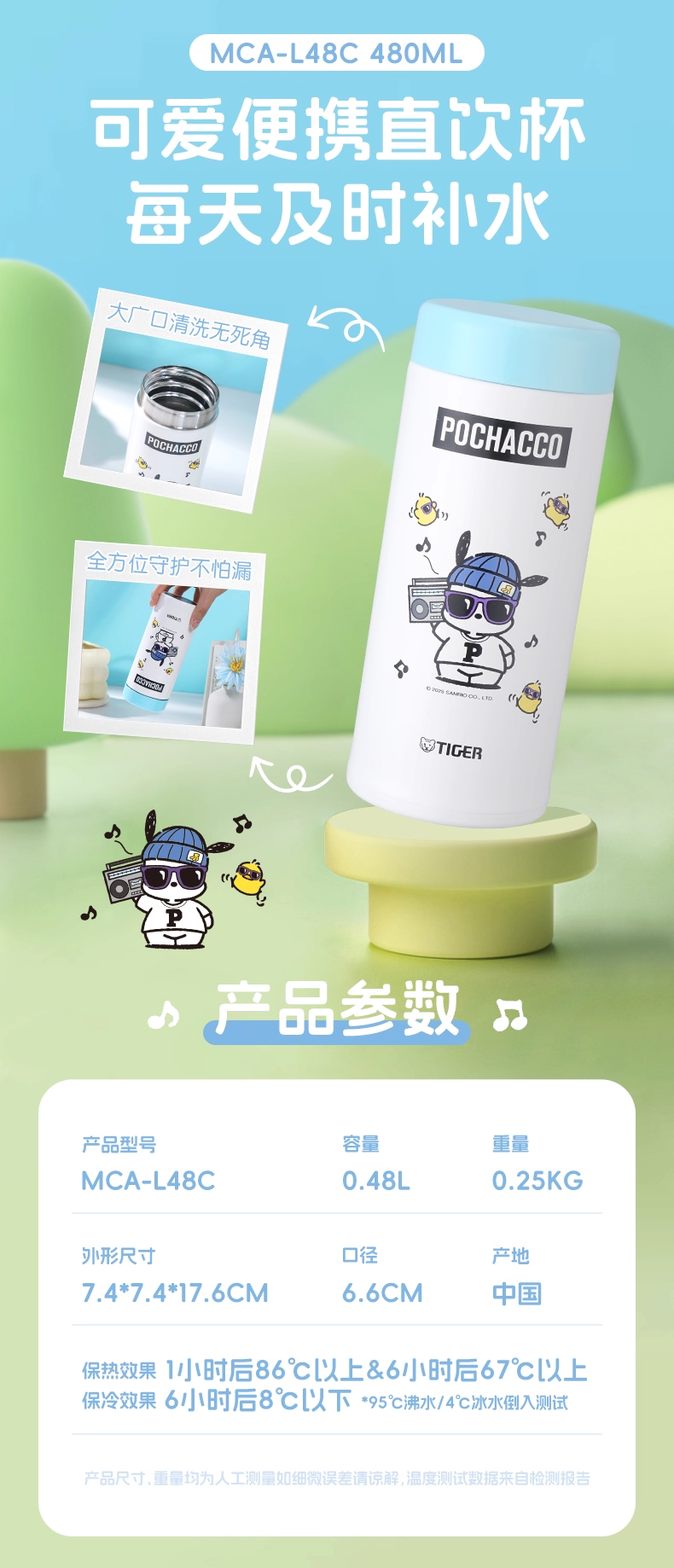 TIGER 虎牌联名款萌趣帕恰狗系列304不锈钢双层真空便携保温杯