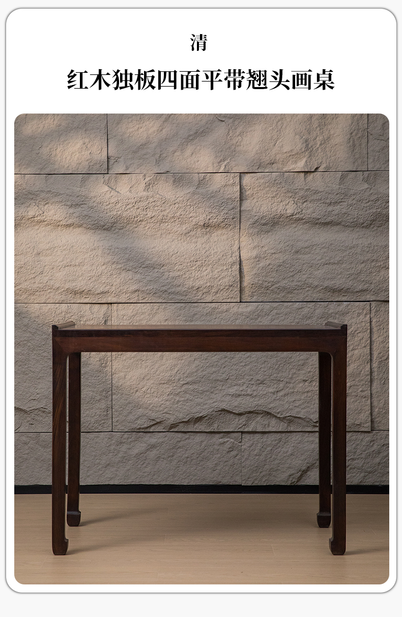 清 红木独板四面平带翘头画桌