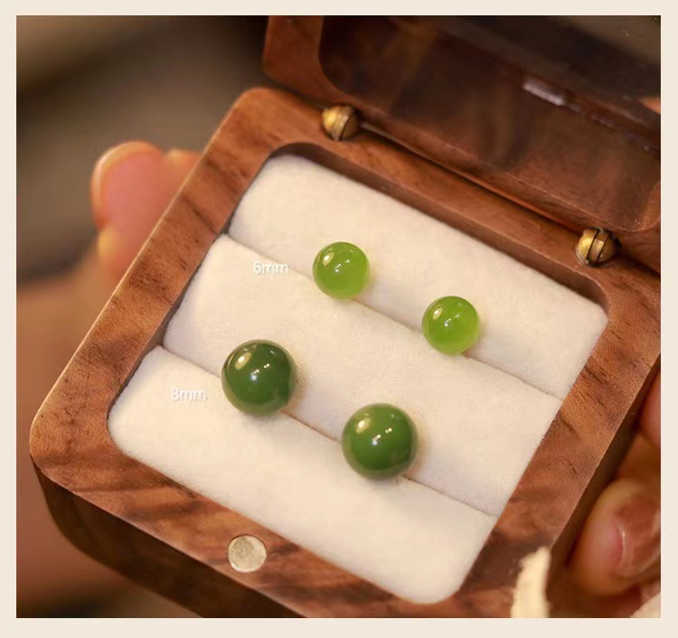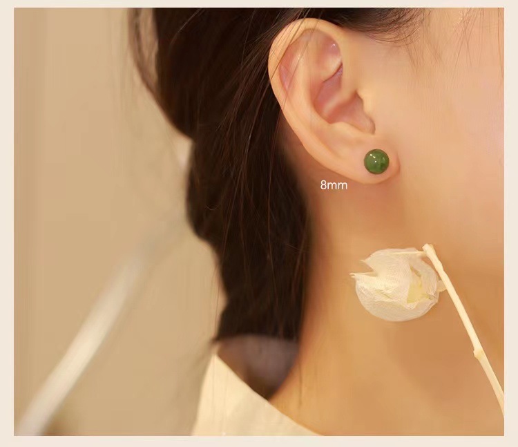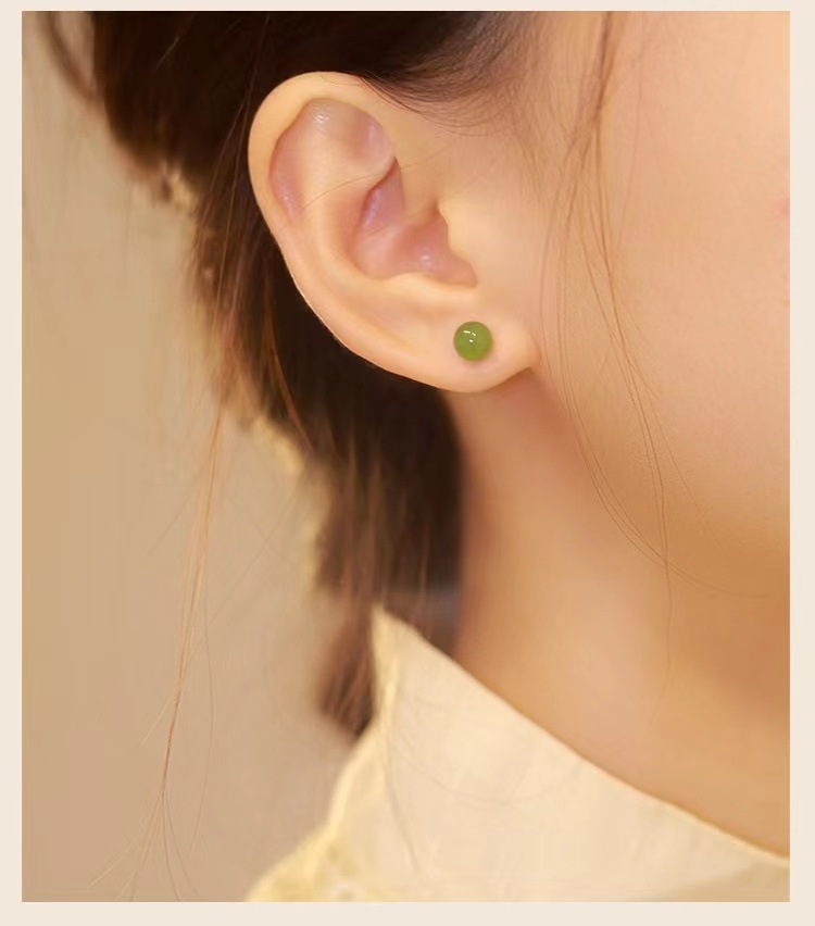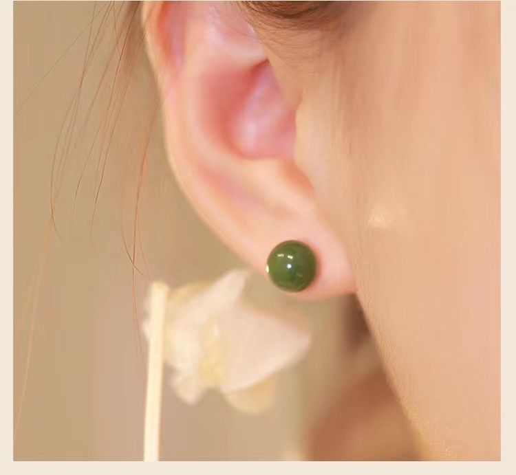 QSS倾尽年华碧玉和田玉耳饰小众设计感耳环古风耳钉女