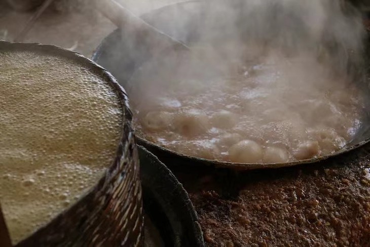 ▲铁锅熬制