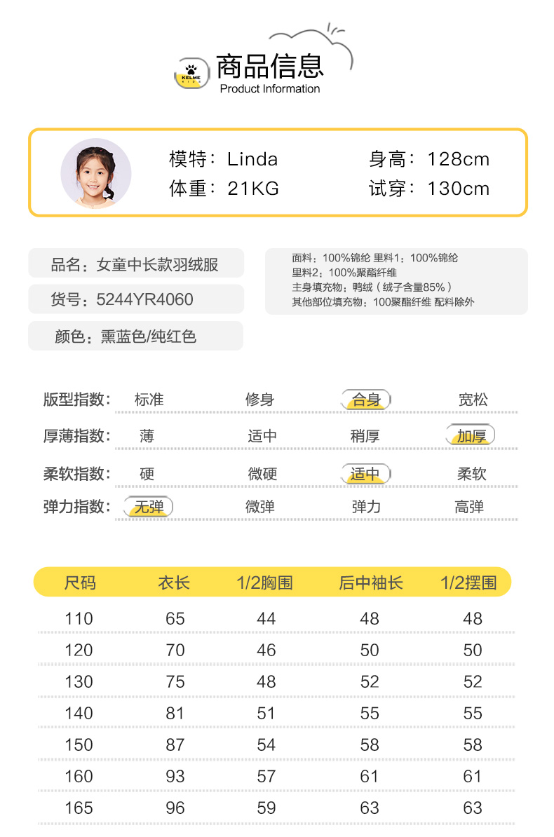 童装冬新款女童中长款加厚保暖羽绒服外套5244YR4060