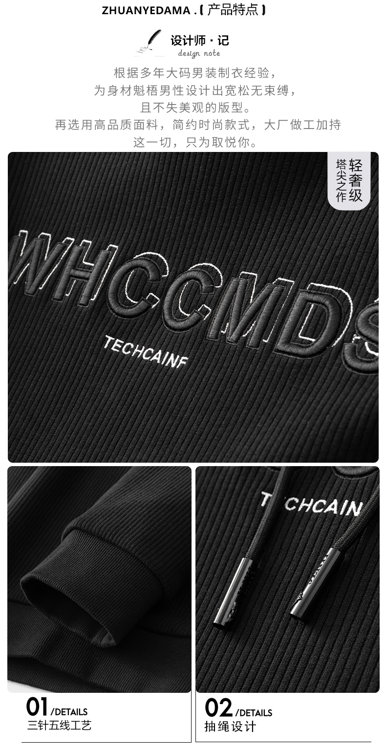 【新款DDA】大依优型大码连帽卫衣长袖重磅针织休闲加肥加大男装上衣胖子