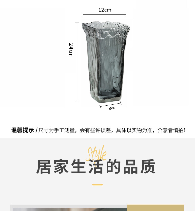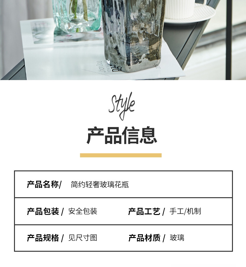 北欧创意现代简约 25Cm方形玻璃花瓶