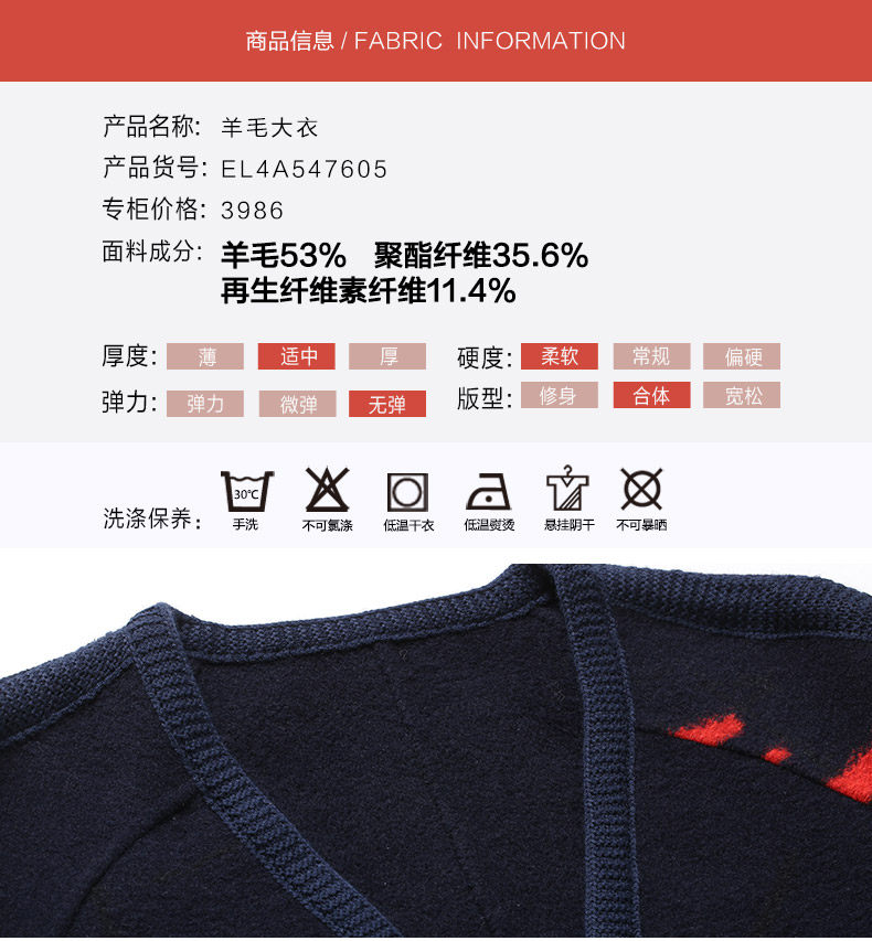 【绵羊毛】乔万尼冬季高级感羊毛大衣简约设计感保暖抗寒大衣ES4A410
