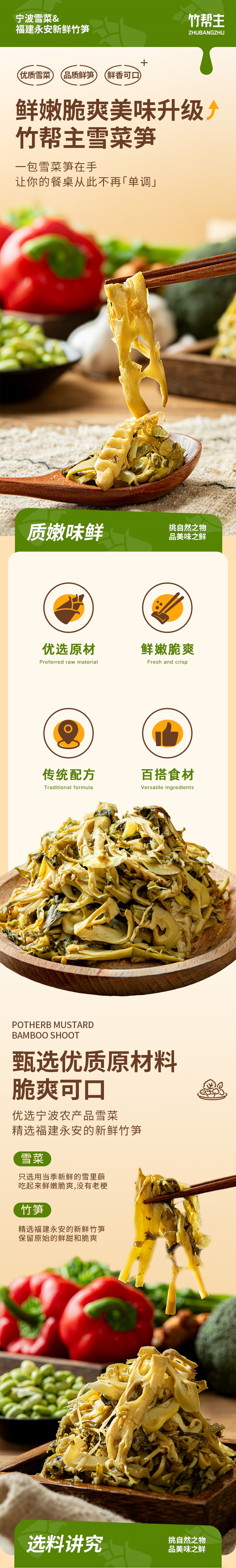 【拌菜精选】竹帮主雪菜笋 舌尖上的非遗 配料干净无添加 宁波农产品出口品质 配粥 炒菜 煮面 开袋即炒