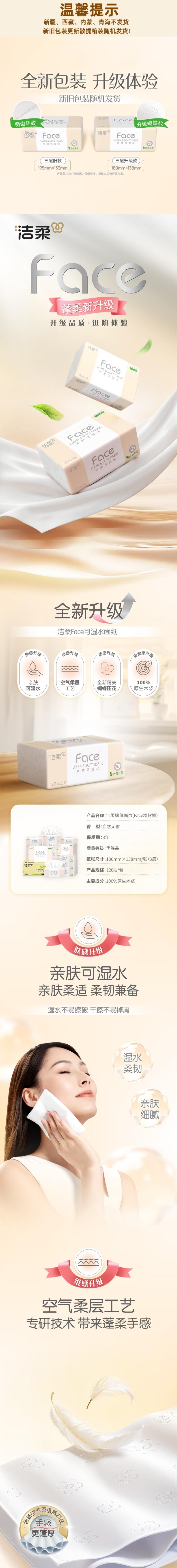 洁柔 抽纸粉Face柔韧3层120抽*6包无香M号 PR078-06E