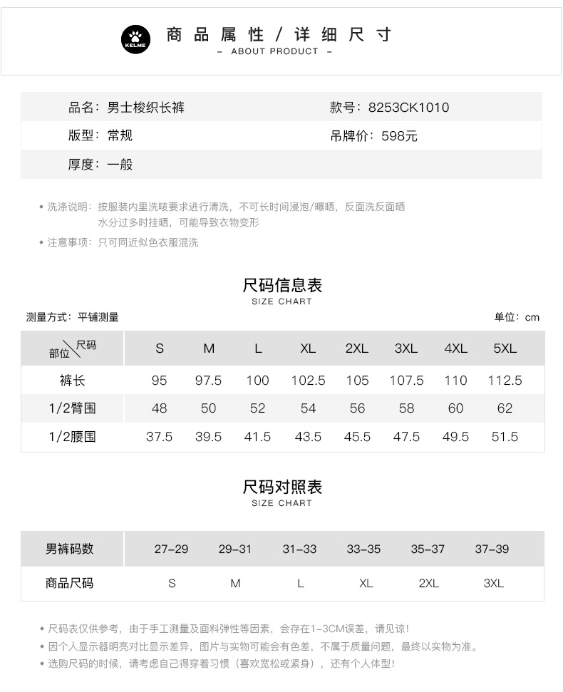 【亚洲杯同款】KELME/卡尔美足球秋季运动长裤男梭织训练裤休闲直筒裤拉链口袋
