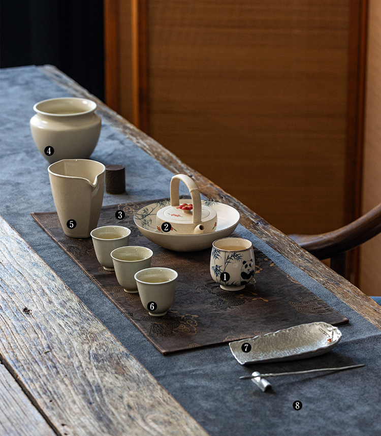 茶香记熊猫罗汉杯70ml景德镇青花陶瓷手绘茶杯主人杯包银口