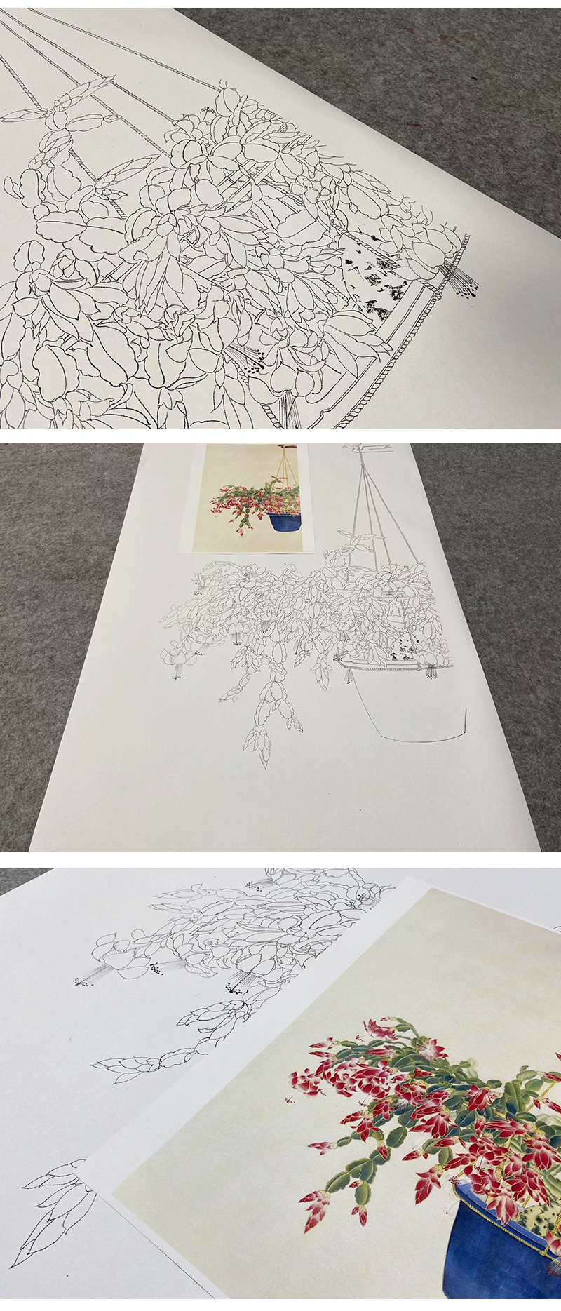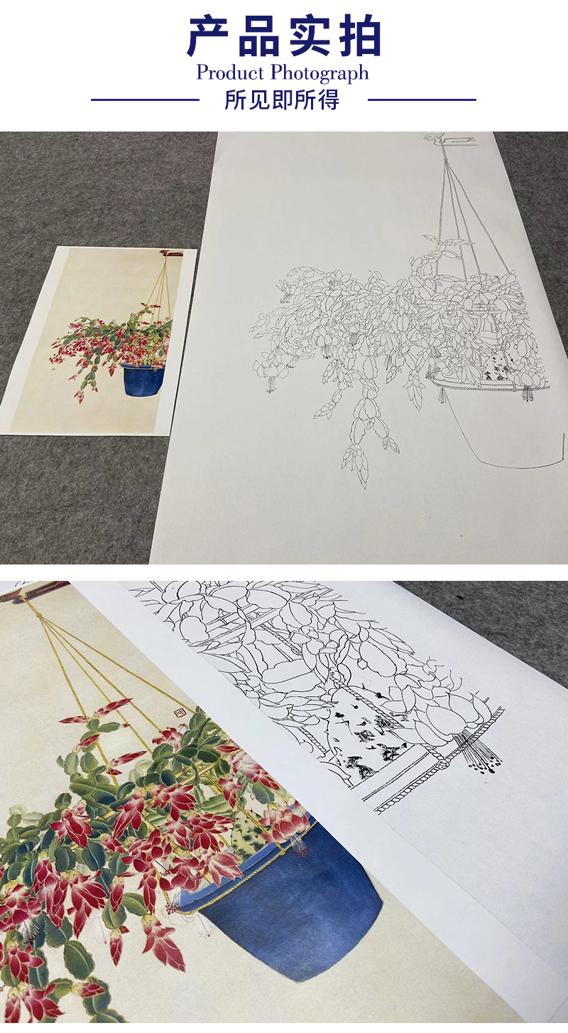 【无步骤】李长白竖幅工笔花鸟画白描底稿《蟹爪兰》LB20