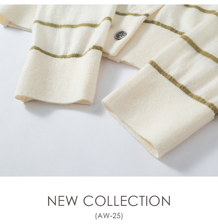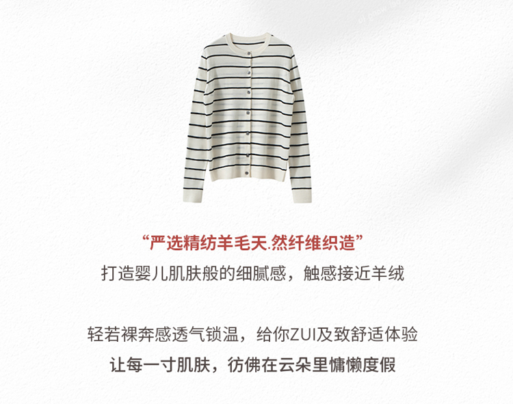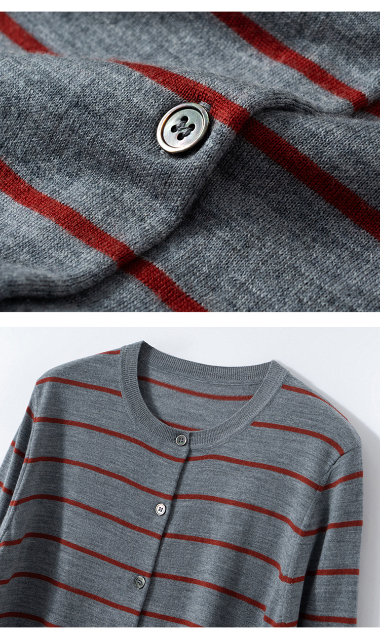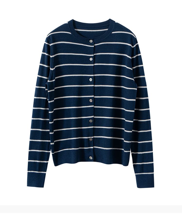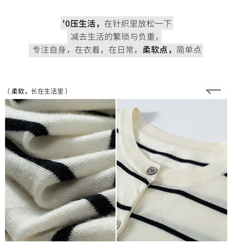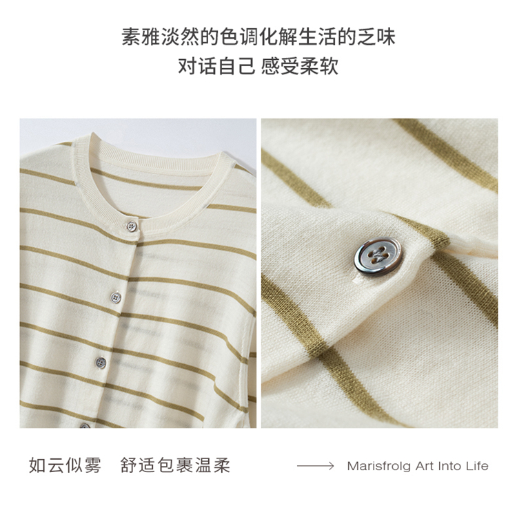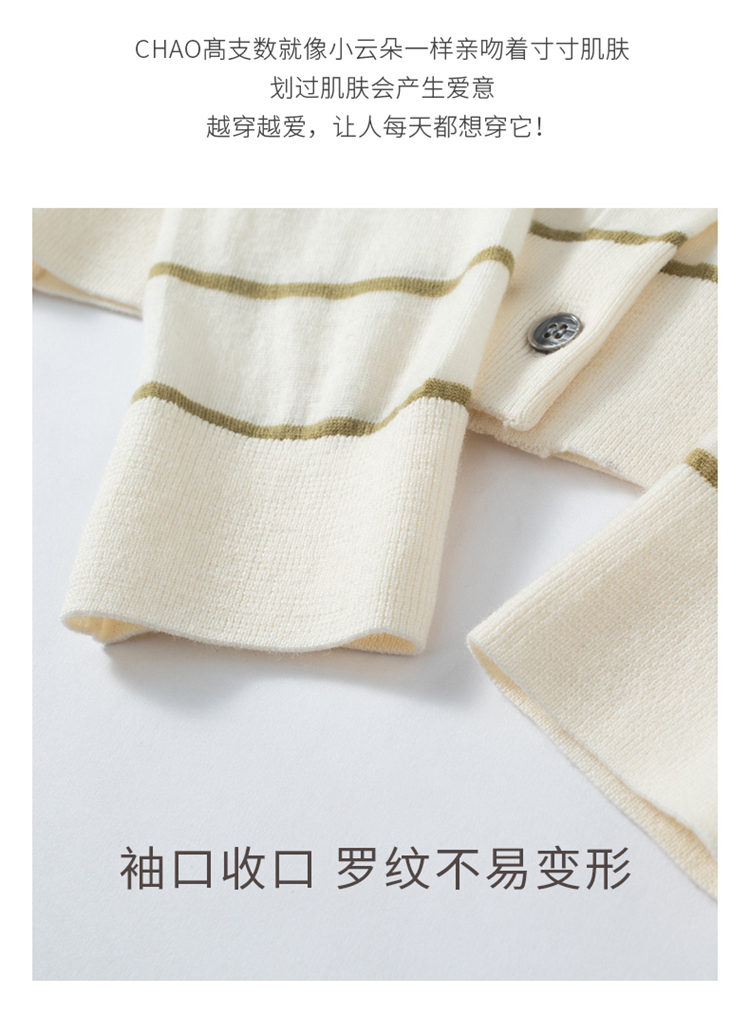 馥迦60支澳洲精纺羊毛小香风条纹开衫
