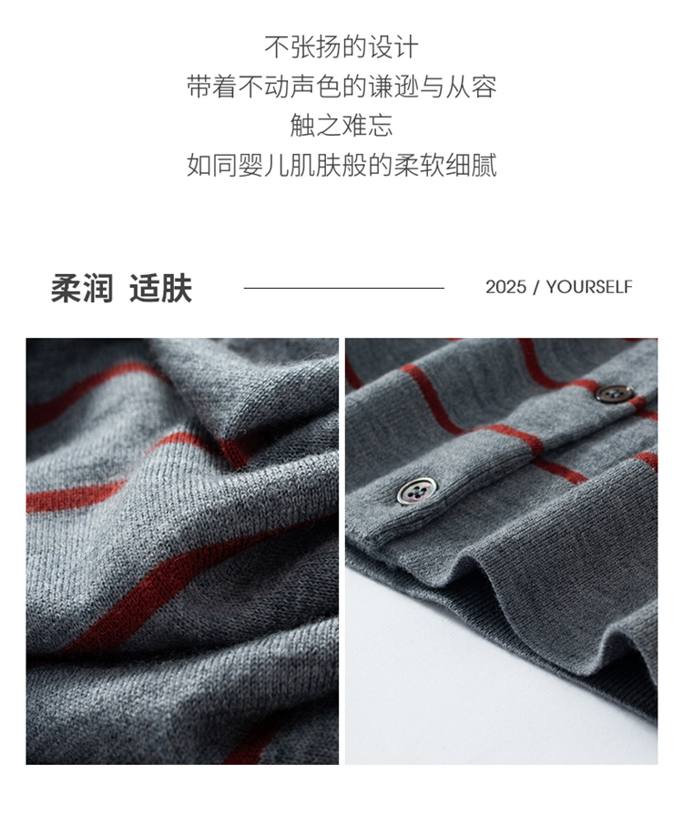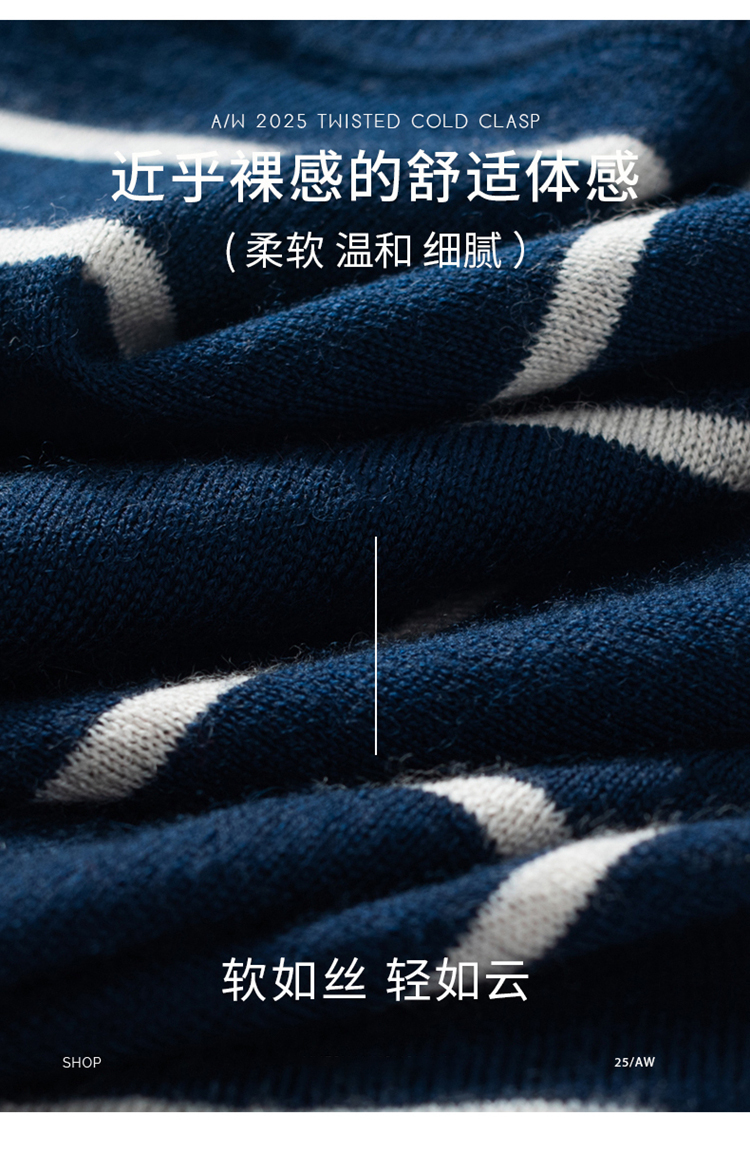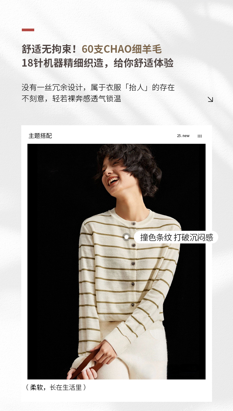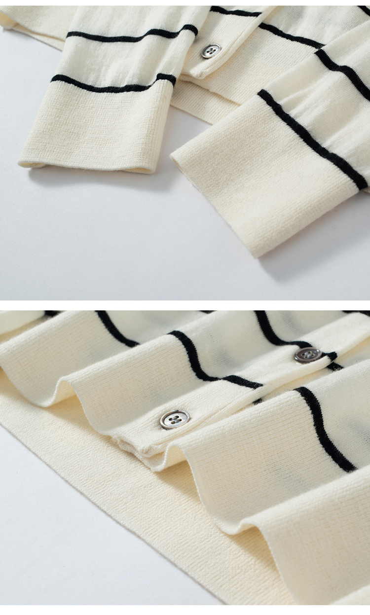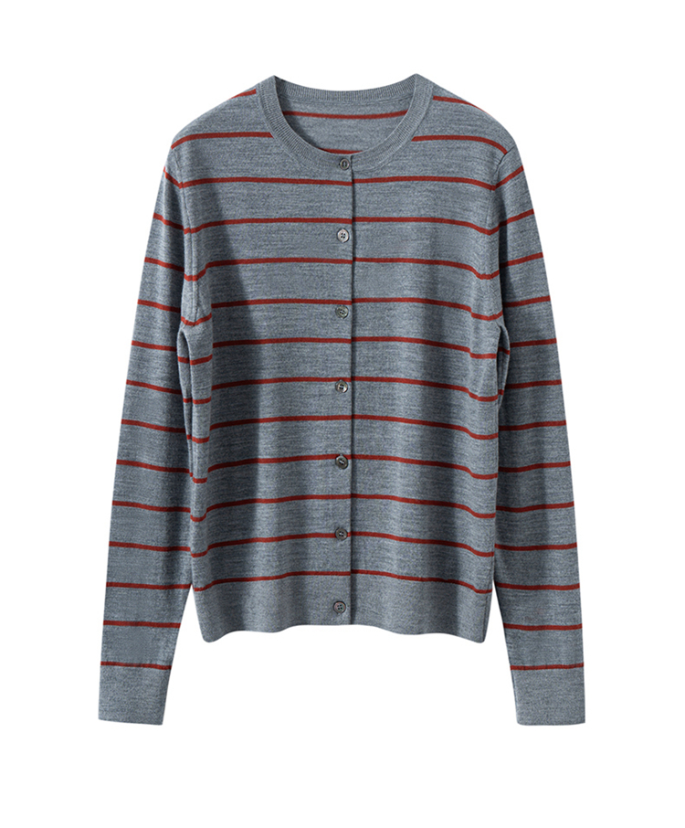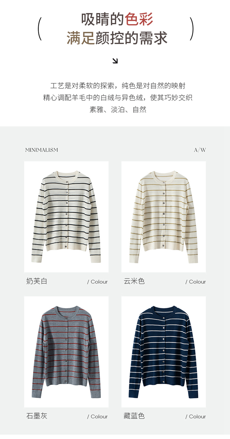 馥迦60支澳洲精纺羊毛小香风条纹开衫