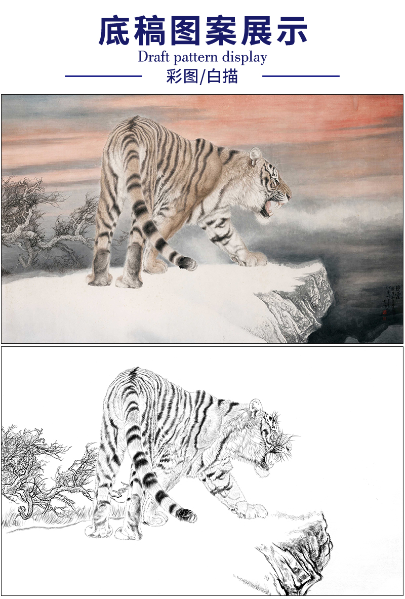 冯大中 老虎 工笔画白描底稿《晚霞》动物临摹勾线高清打印稿DZ14