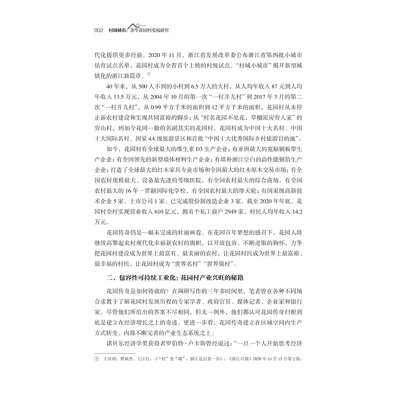 村域城市:金华花园村发展研究/中国村庄发展浙江样本研究丛书/王 平|责编:赵静/陈丽霞|总主编:陈野/浙江大学出版社
