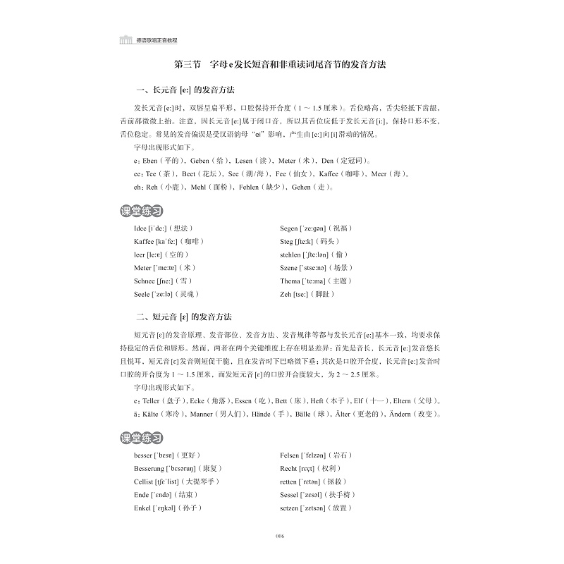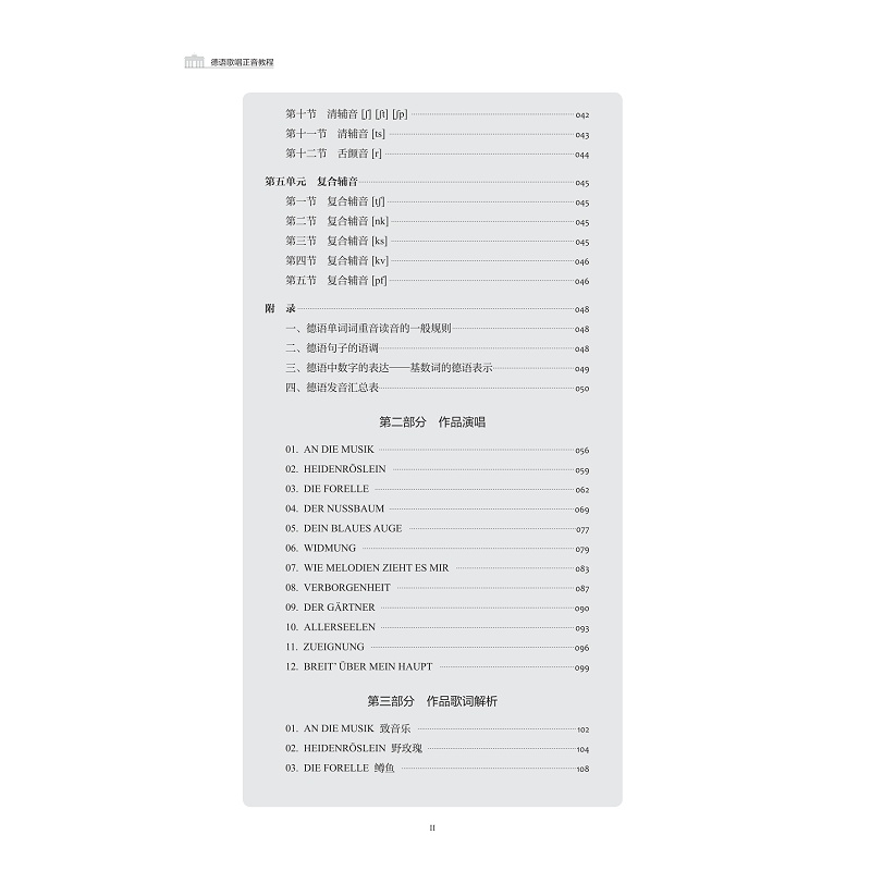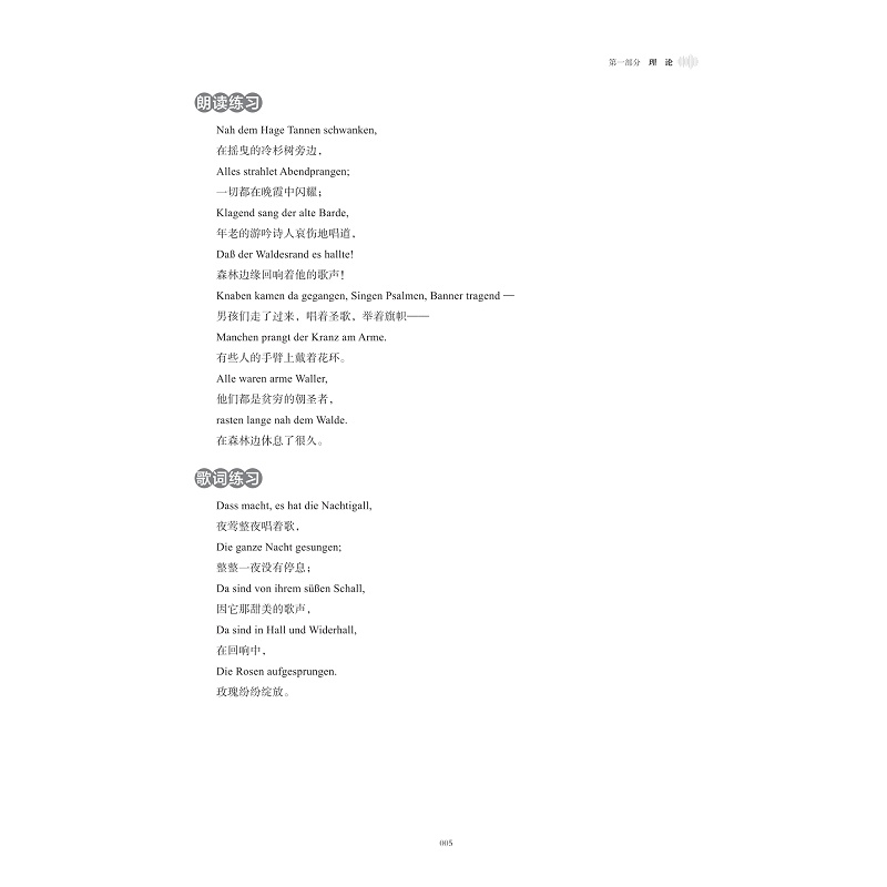 本教材为德语歌唱正音教程,融入课程思政元素,在习近平新时代思想的影响下,做到洋为中用,在艺术歌曲的选择上有所规范,把国外相对完善的艺术歌曲体系引入到我们的声乐教学当中。教材不光有文字和曲谱,还有大量的艺术歌曲资源库,例如有视频资料上万部、原创歌词翻译百余首,将每一首作品的歌词正音及示范教学融入教学当中,做到视、听、读、学相融合。本教材适用于高校音乐表演(美声)专业的本科生和研究生,尤其是声乐歌剧系的学生。同时,本教材也适合对德语艺术歌曲感兴趣的声乐爱好者和专业教师使用。