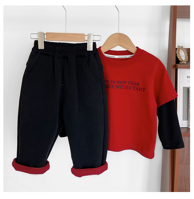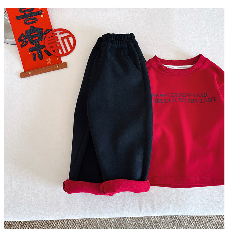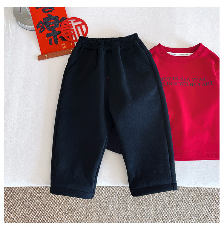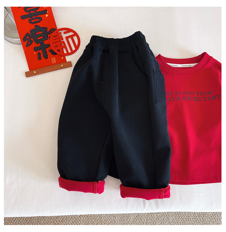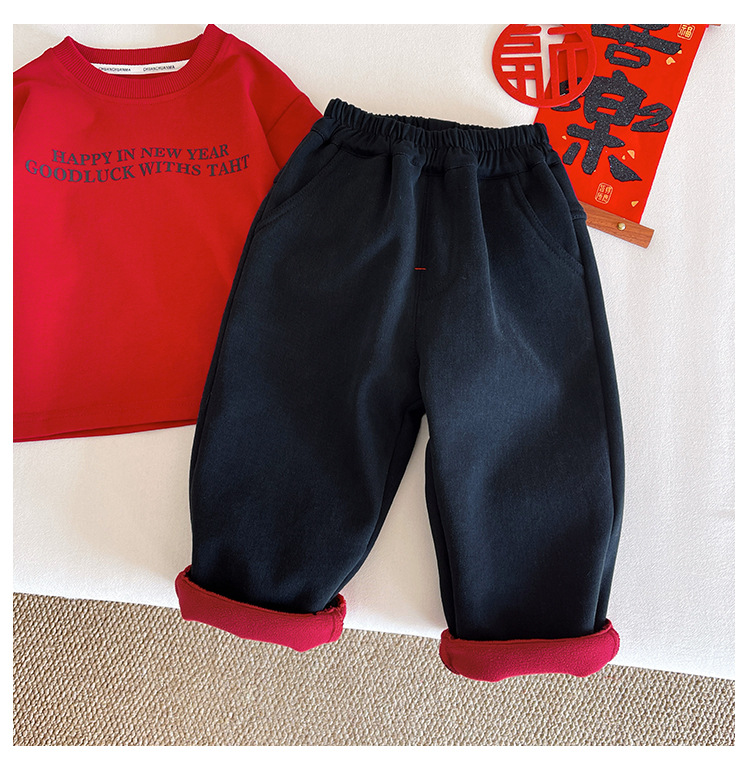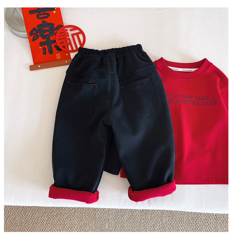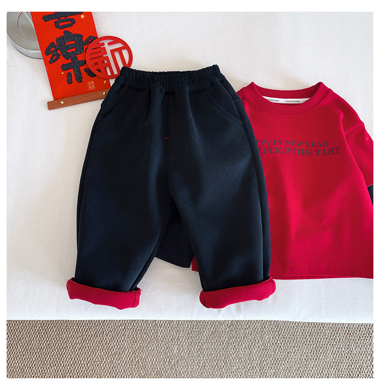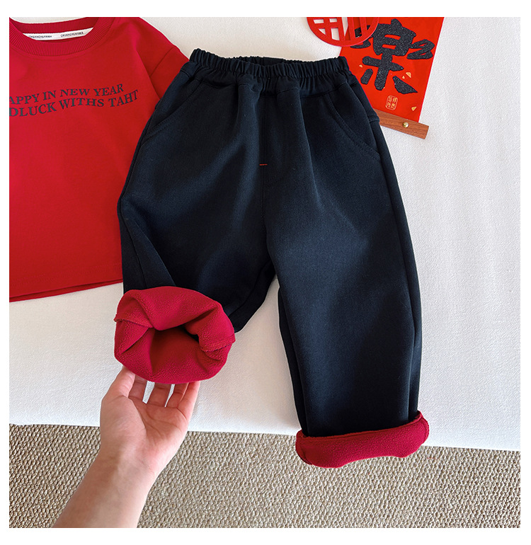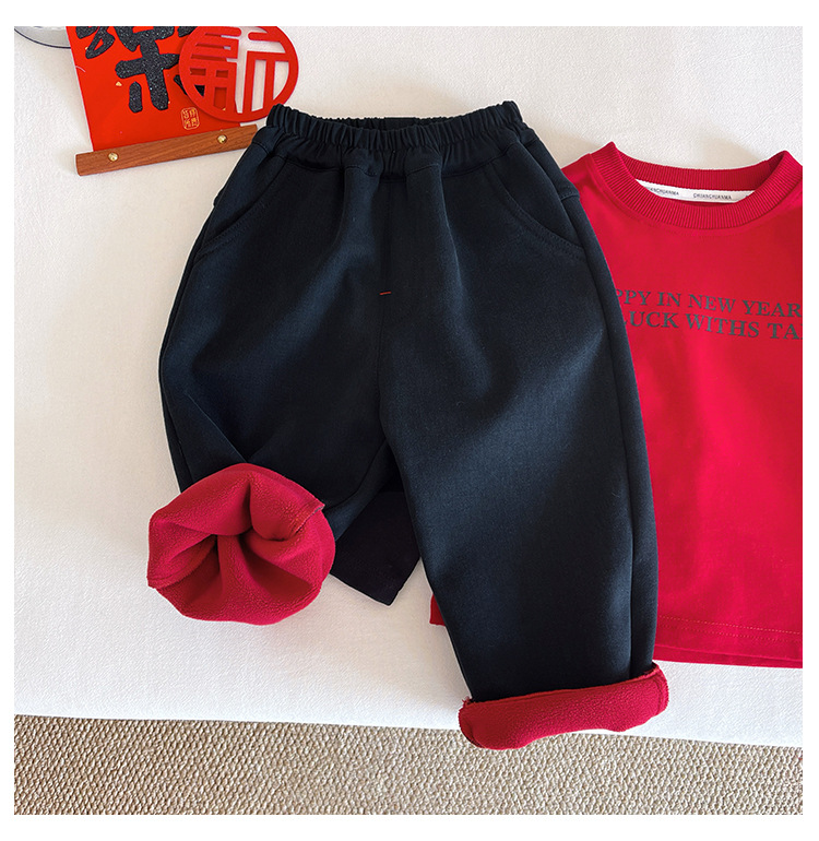 【新年暖装备❗️轻柔不臃肿】2026马年新年春节冬新款帅气百搭男童加绒休闲裤时髦保暖简约直筒裤新品。jc
