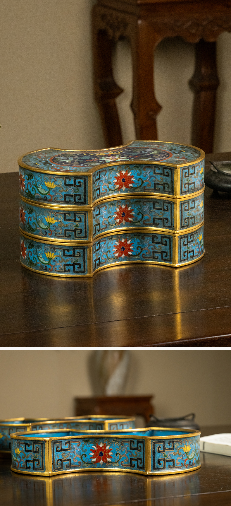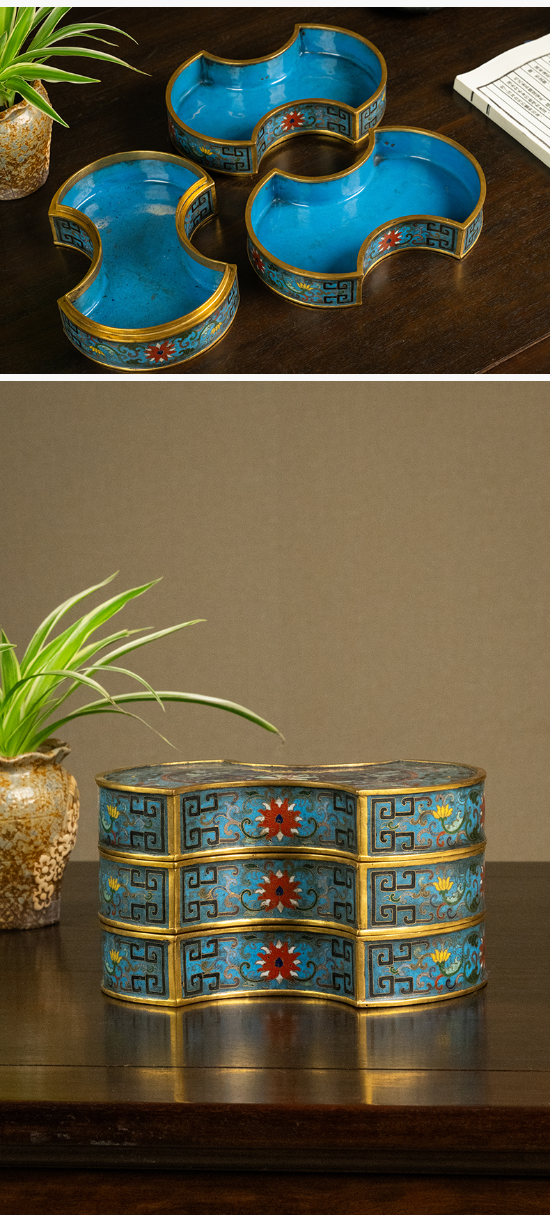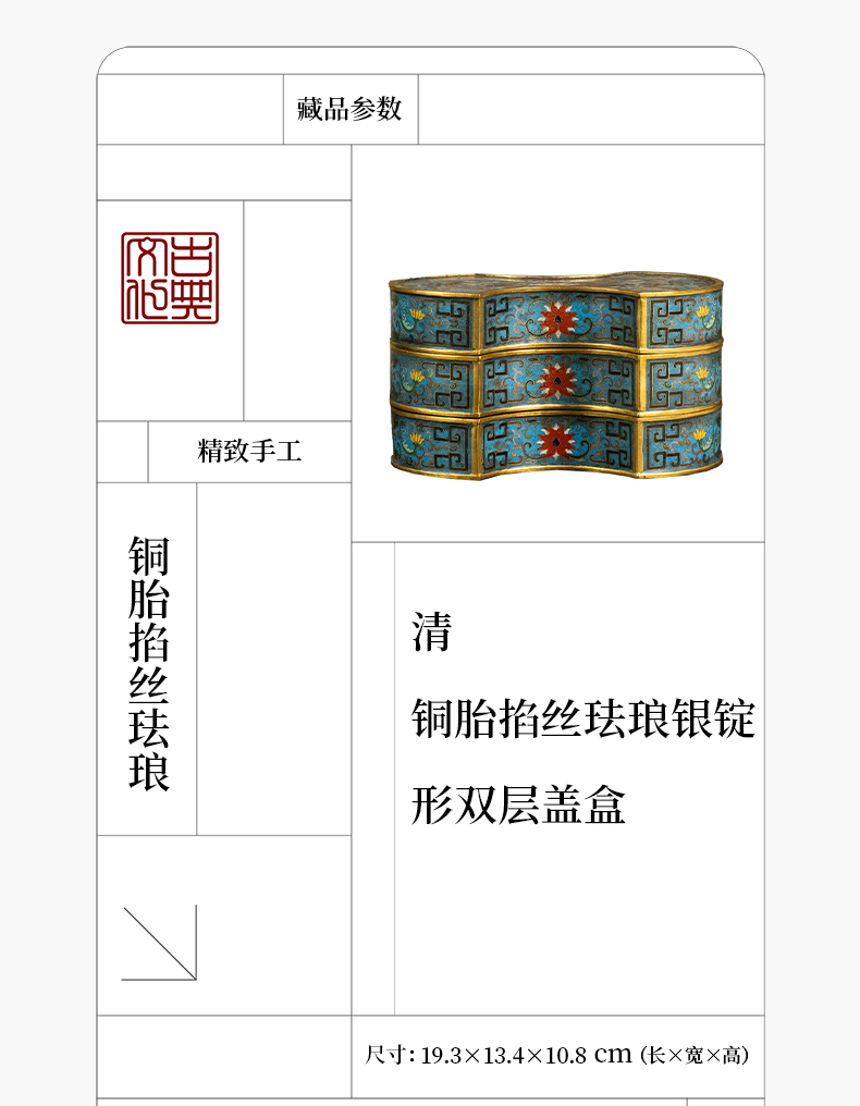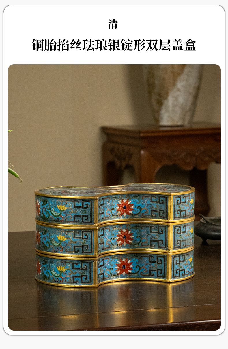 清 铜胎掐丝珐琅银锭形双层盖盒