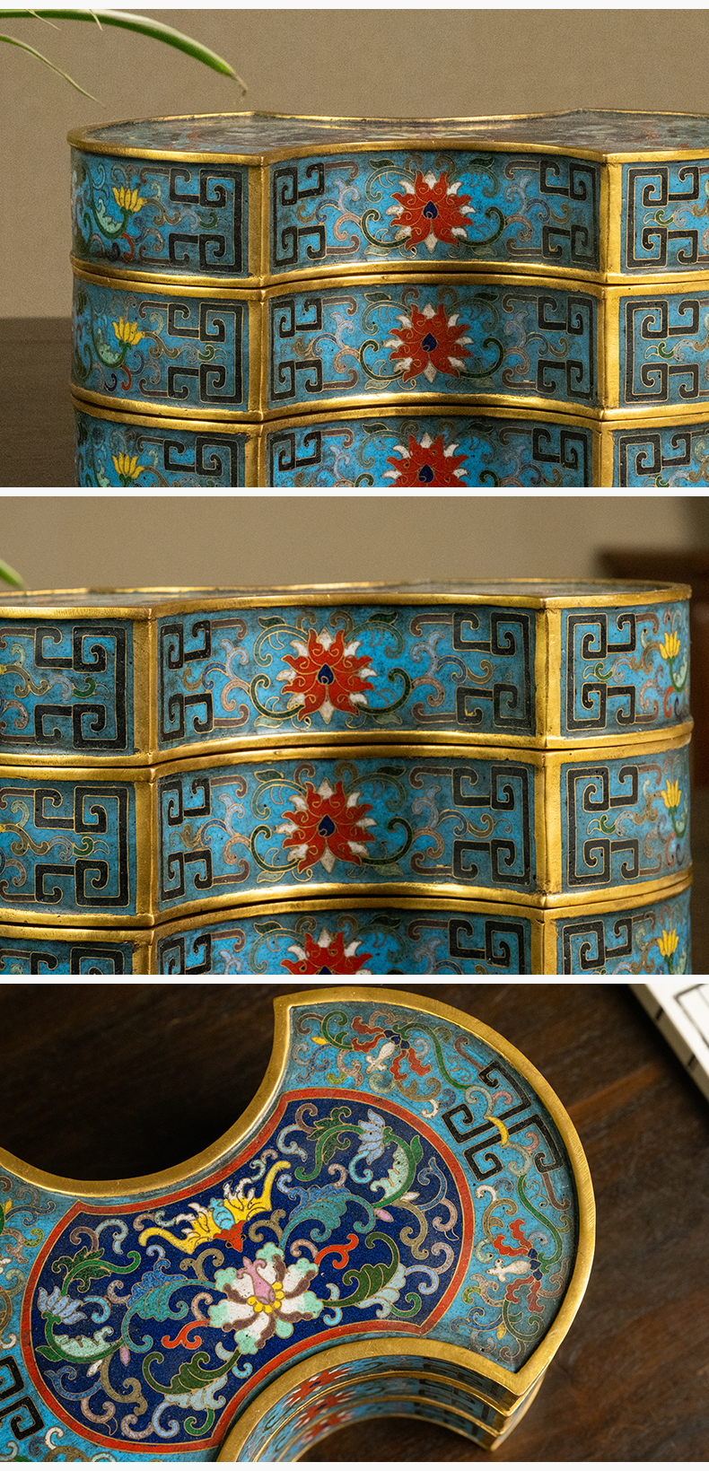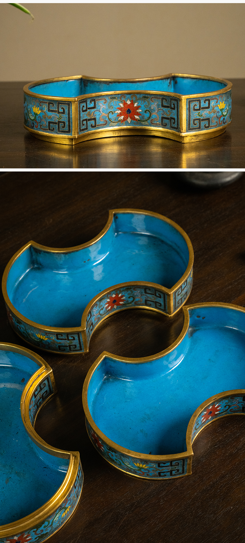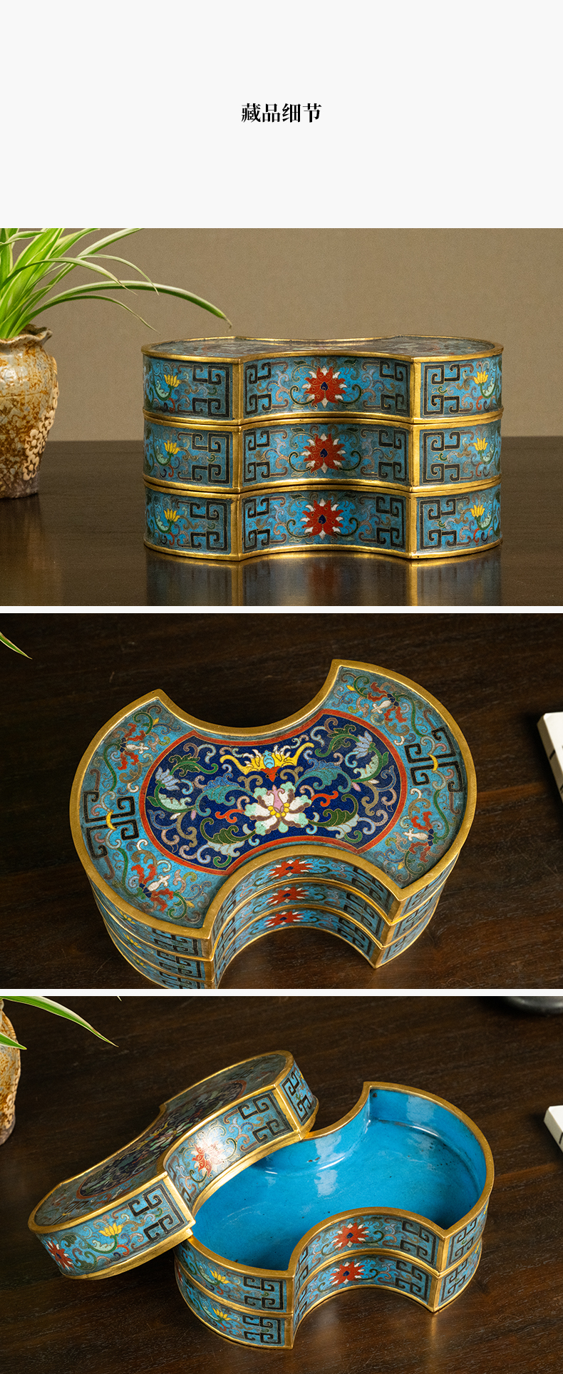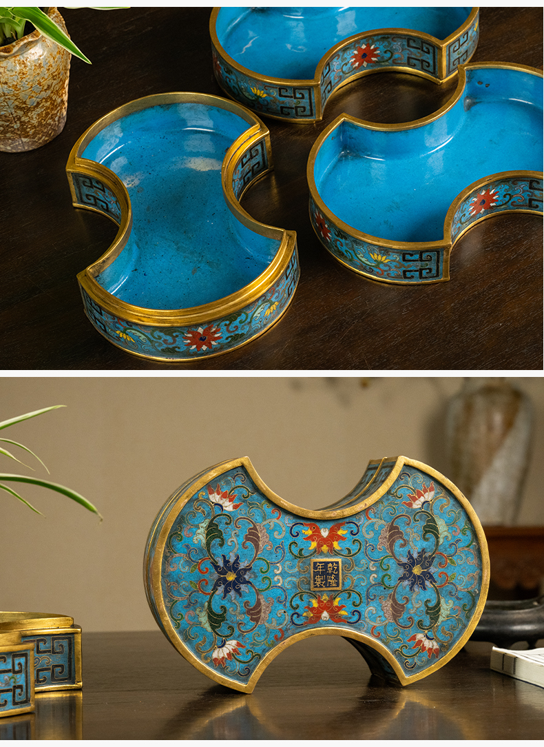 清 铜胎掐丝珐琅银锭形双层盖盒