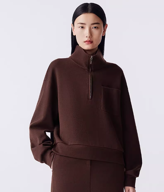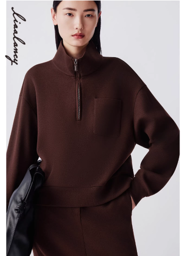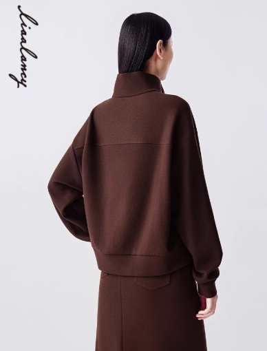 朗姿 羊毛气质休闲立领针织卫衣女简约半拉链上衣LAJH04JHT171