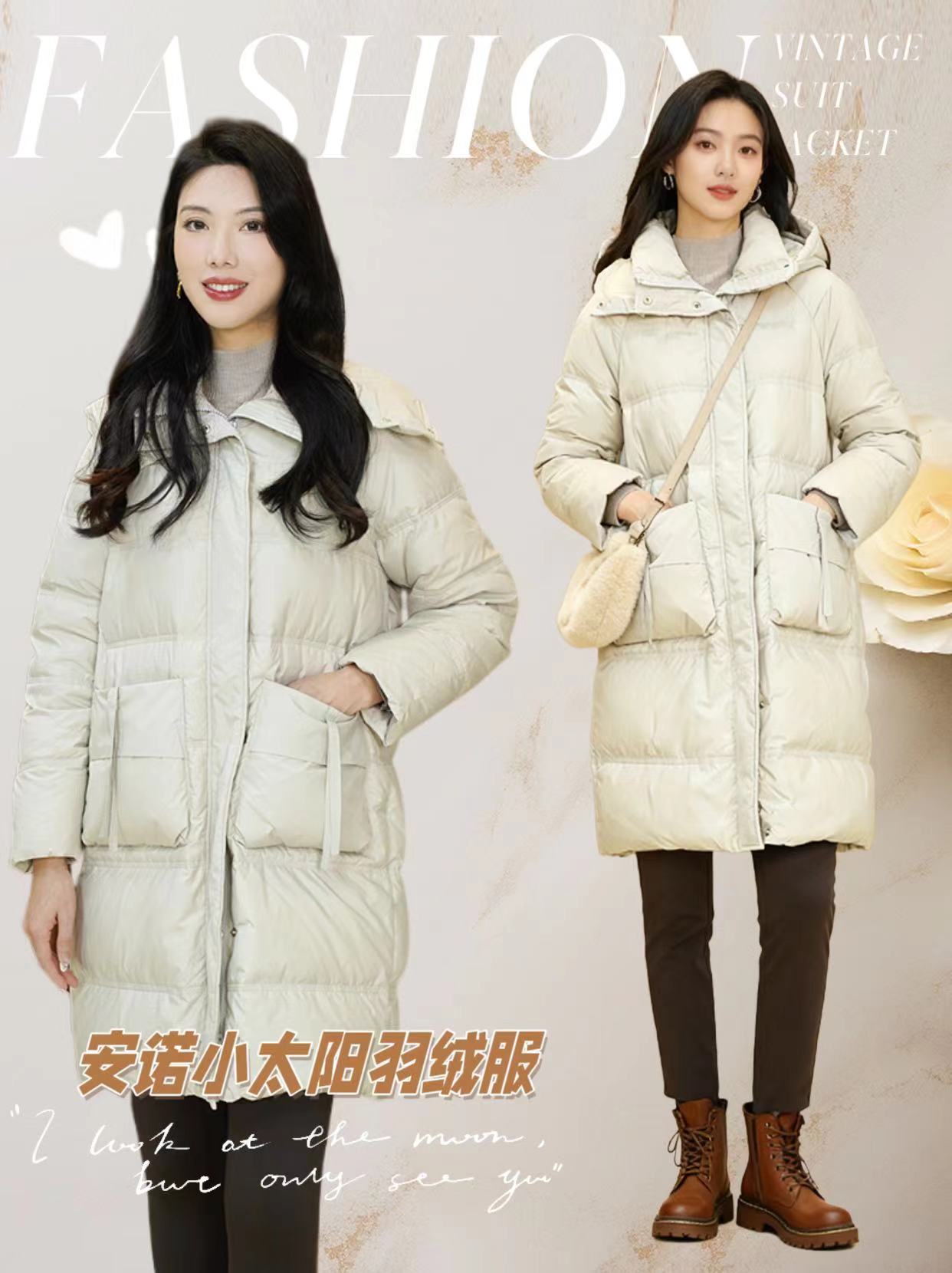 安诺 Sakura Sprite【小太阳羽绒服】 设计感口袋连帽一手长羽绒服LDWGY115