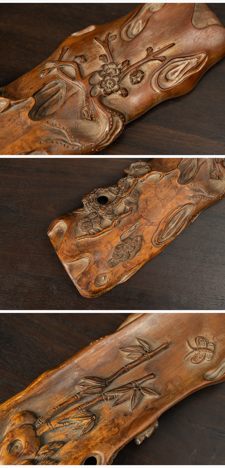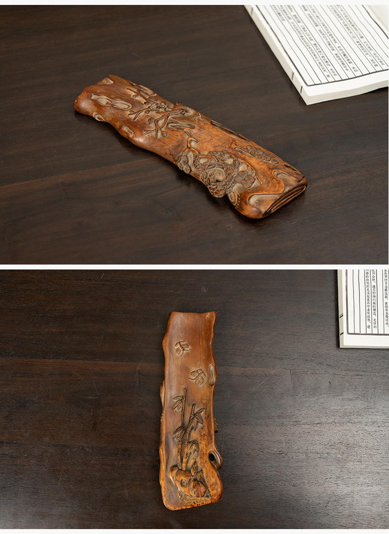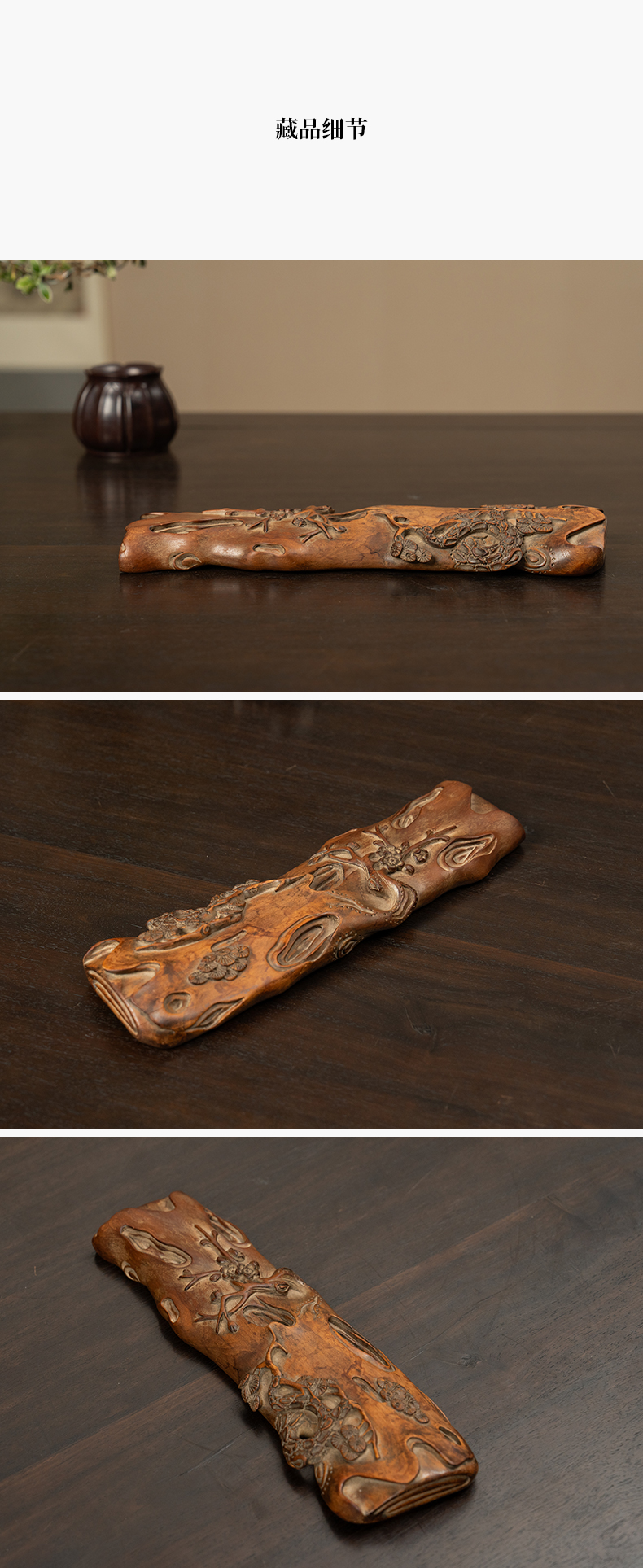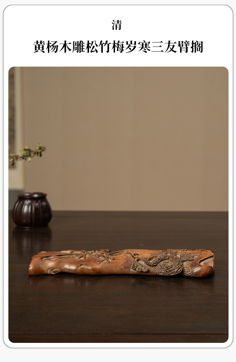 清 黄杨木雕松竹梅岁寒三友臂搁