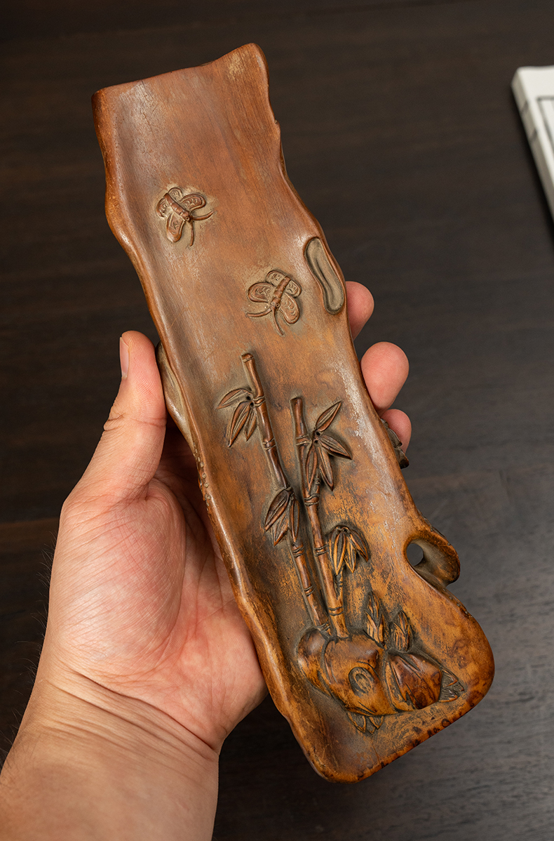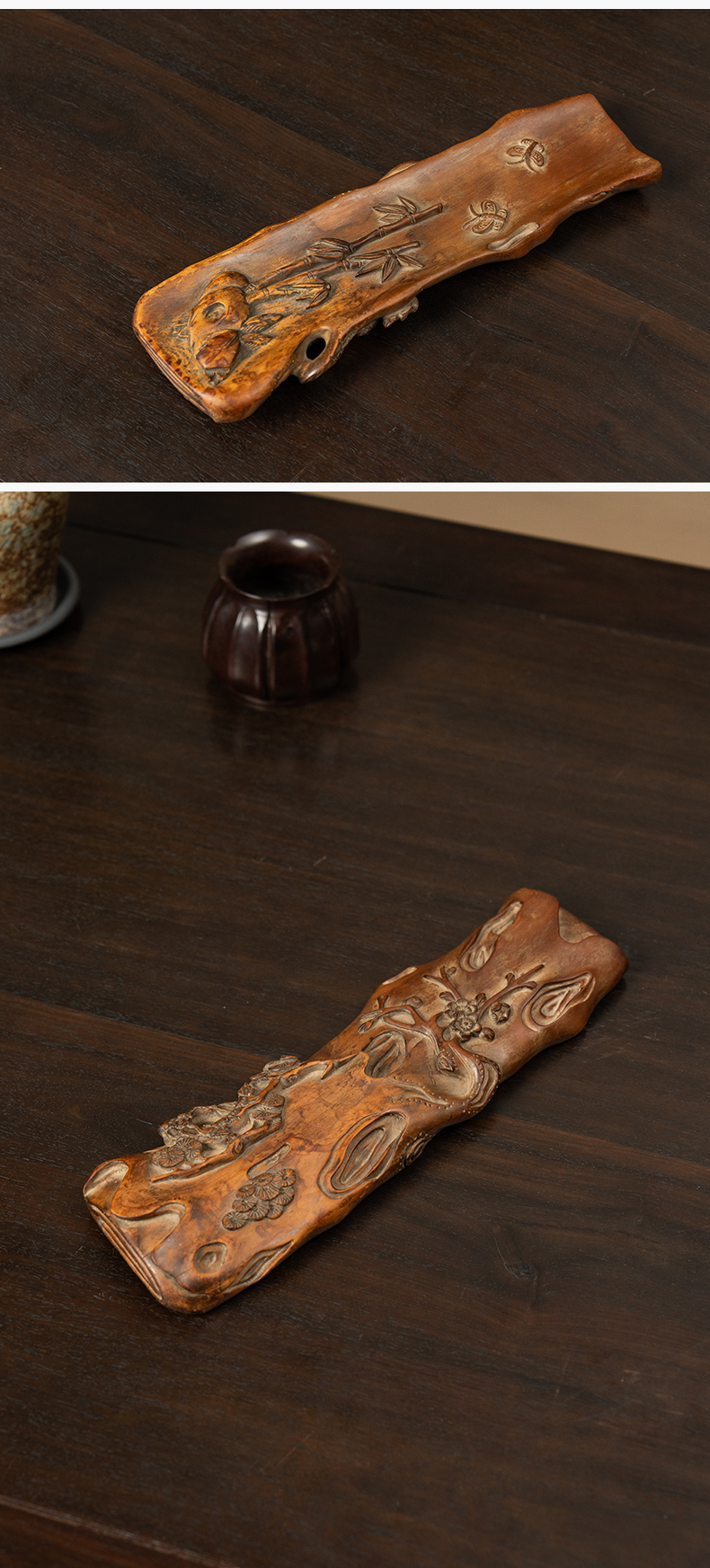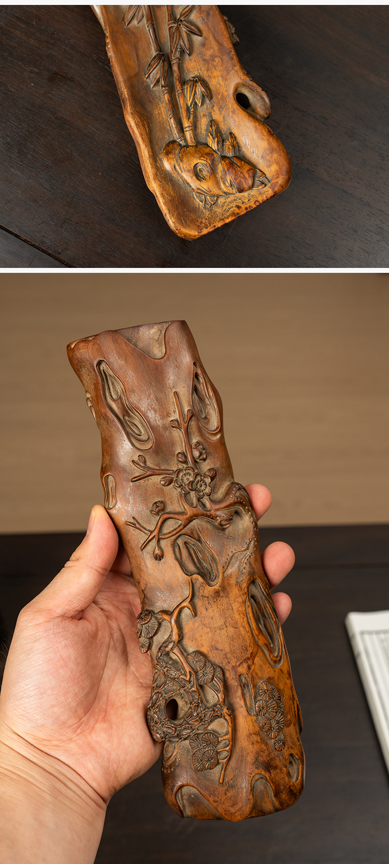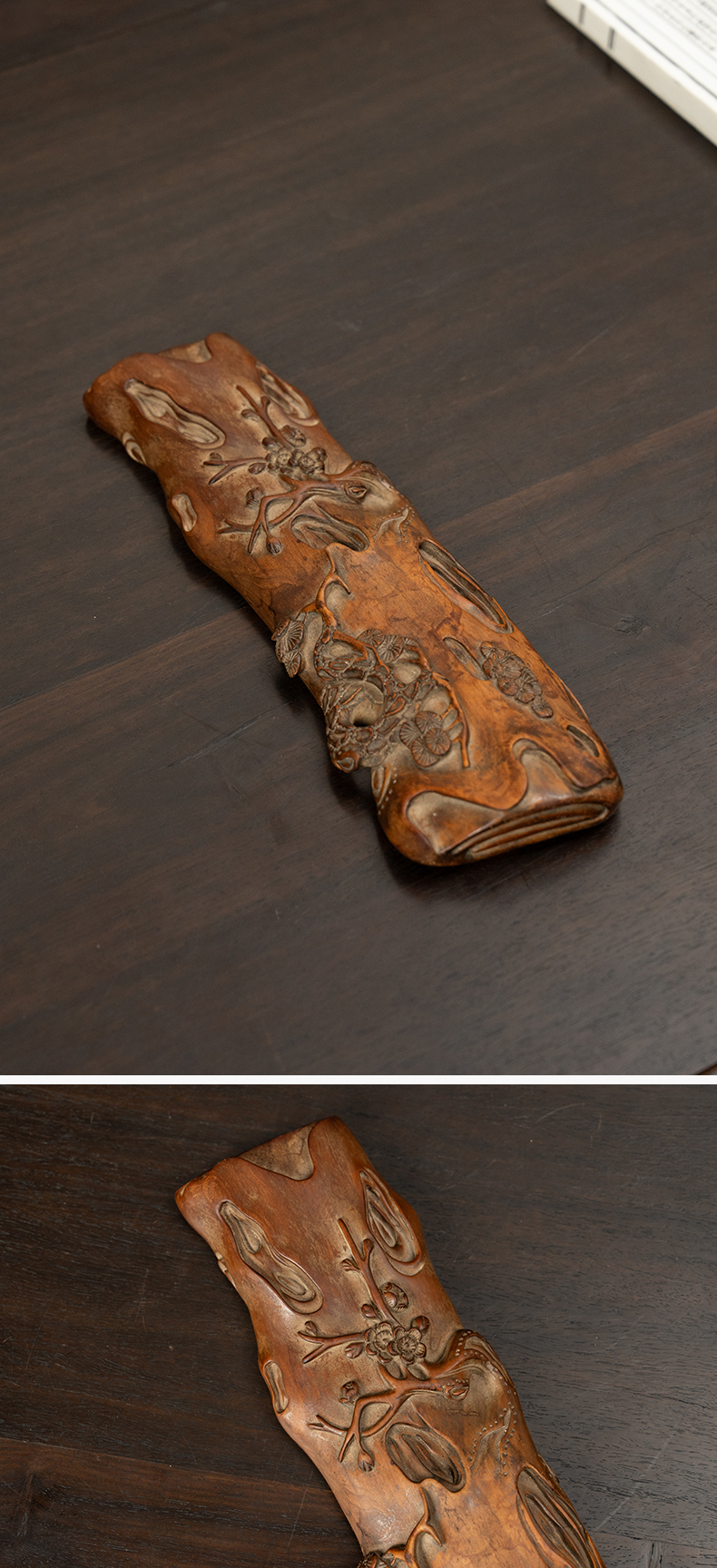 清 黄杨木雕松竹梅岁寒三友臂搁