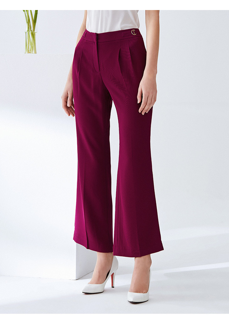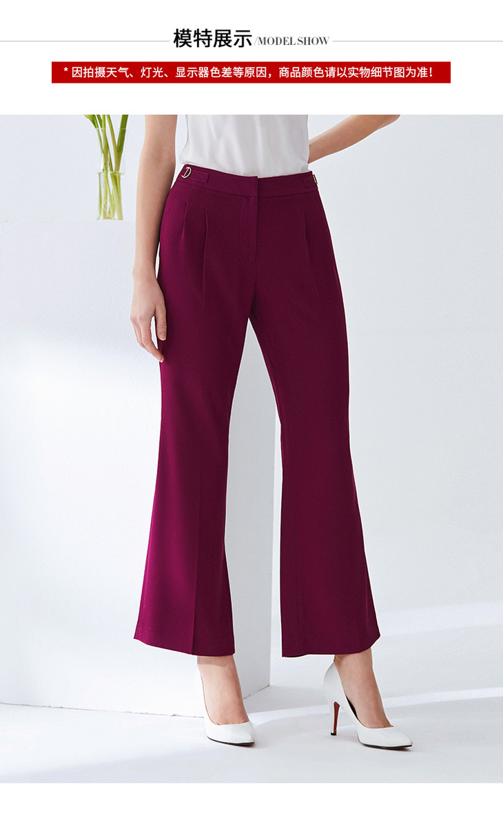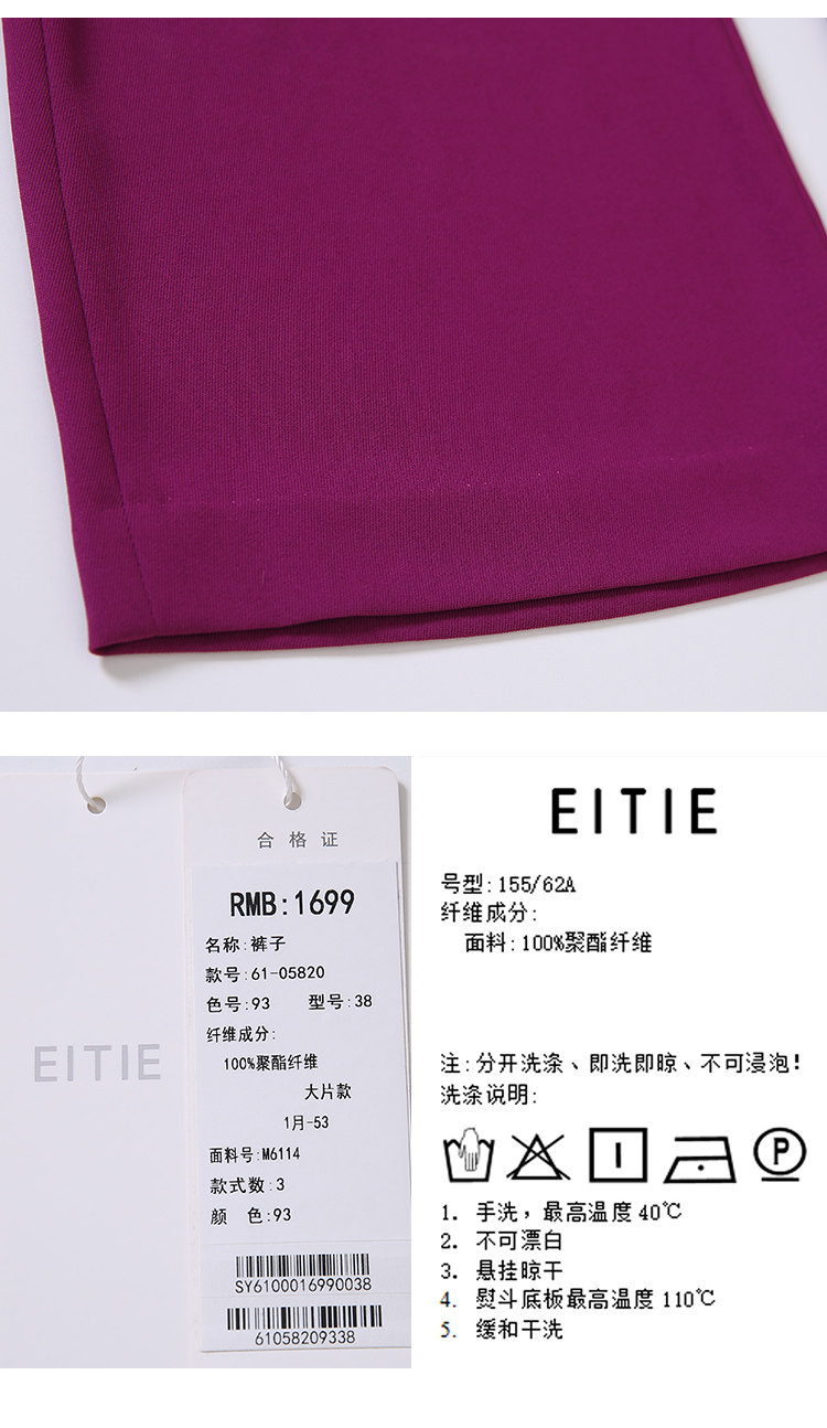 EITIE爱特爱女装春款时尚减龄通勤显瘦高腰微喇阔腿长裤女6105820