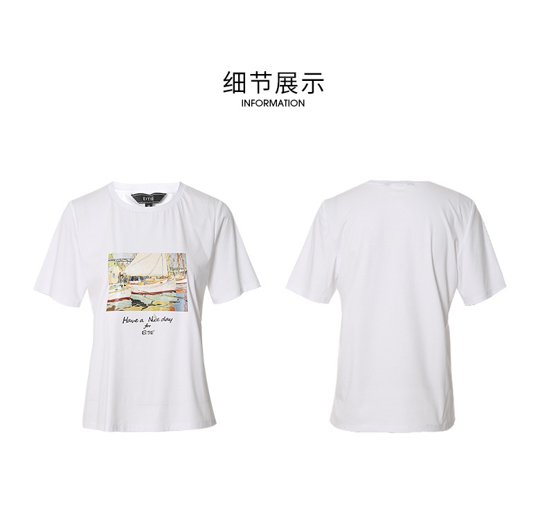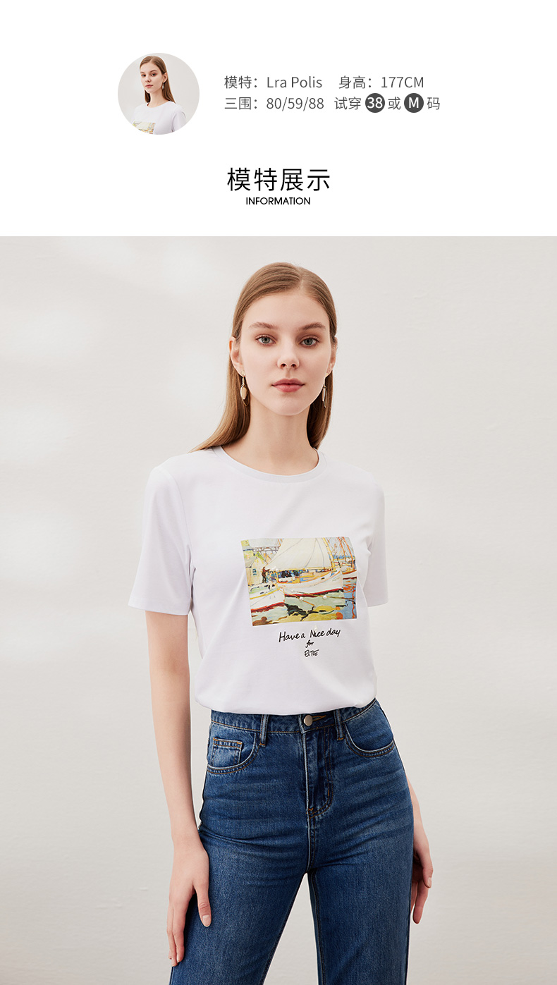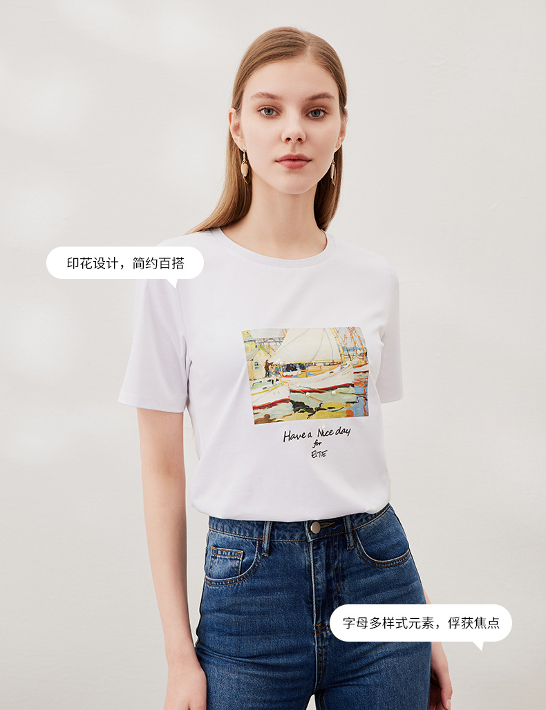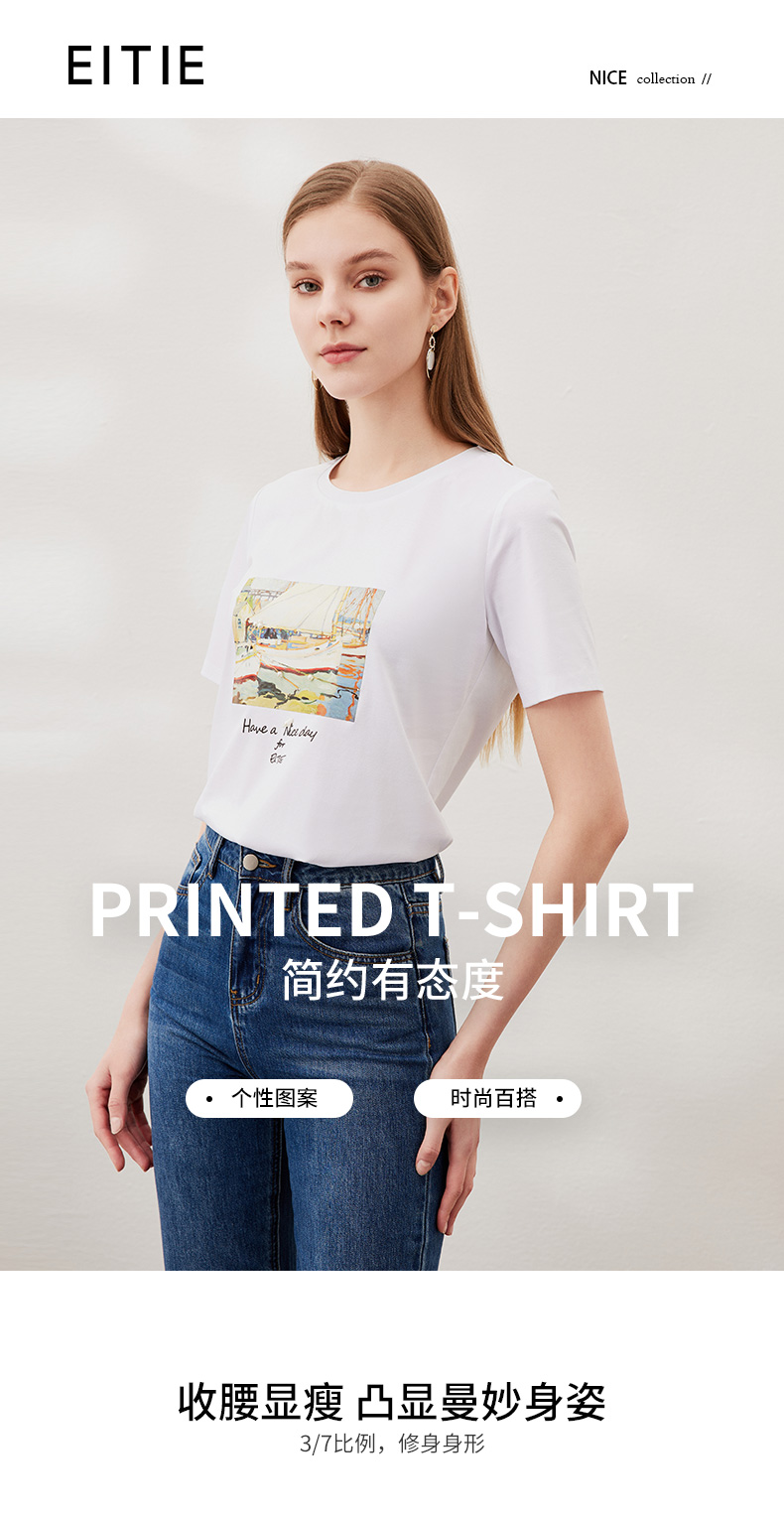 EITIE爱特爱夏季新款时尚百搭打底舒适弹力圆领印花T恤女6902602