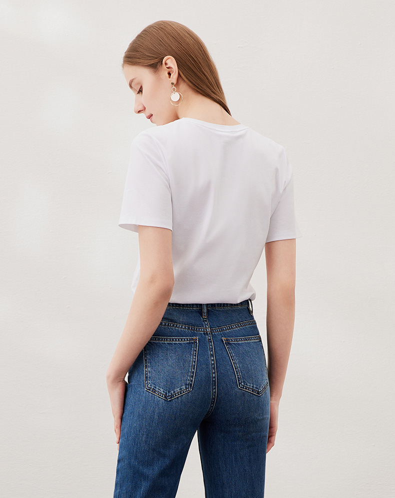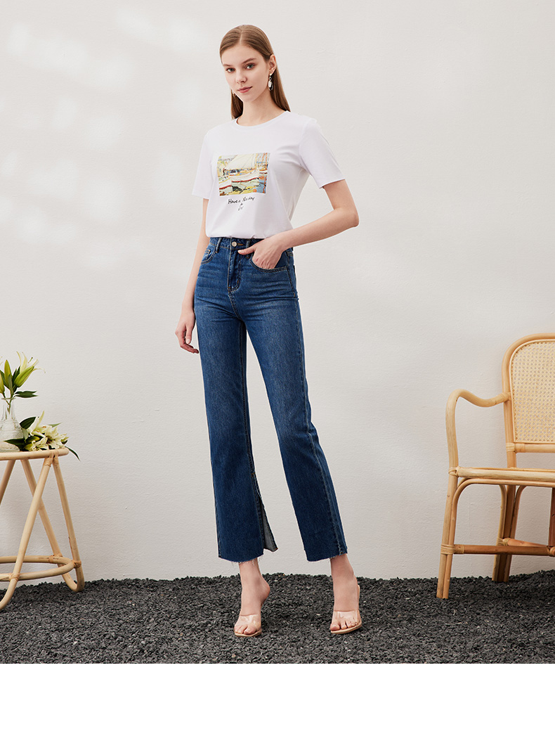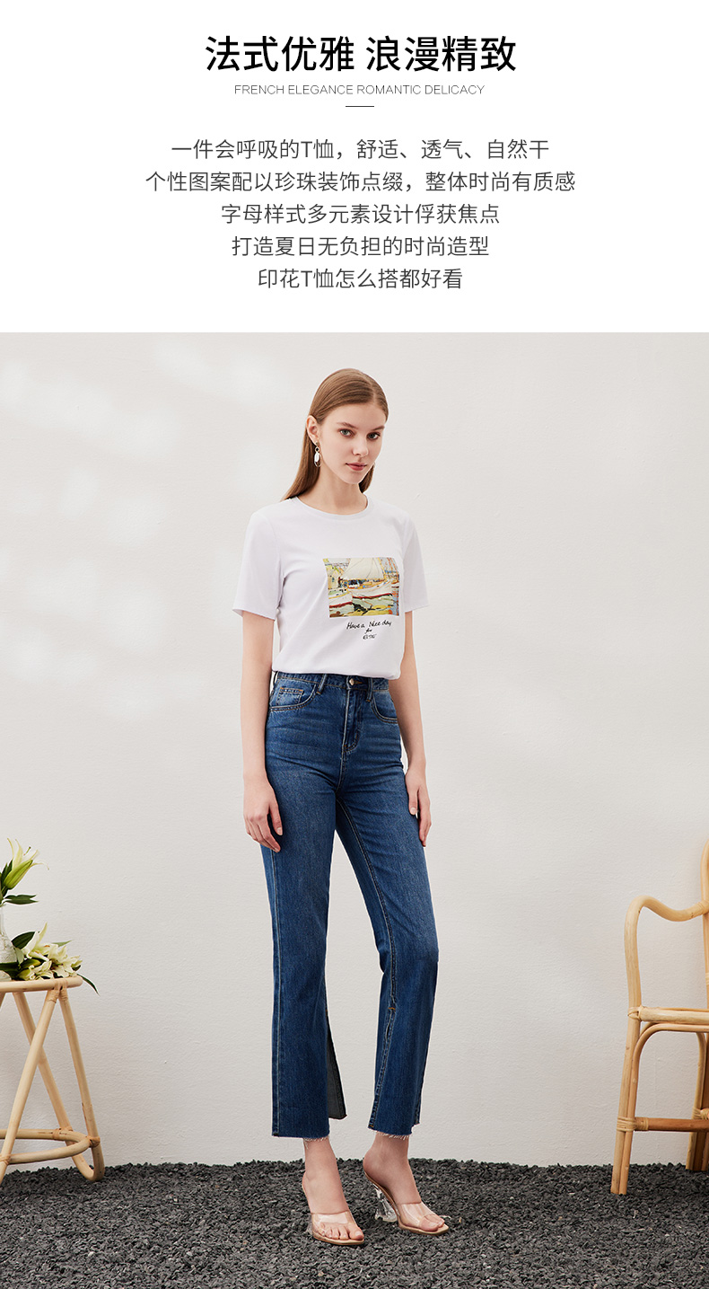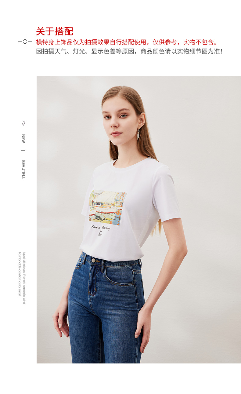 EITIE爱特爱夏季新款时尚百搭打底舒适弹力圆领印花T恤女6902602