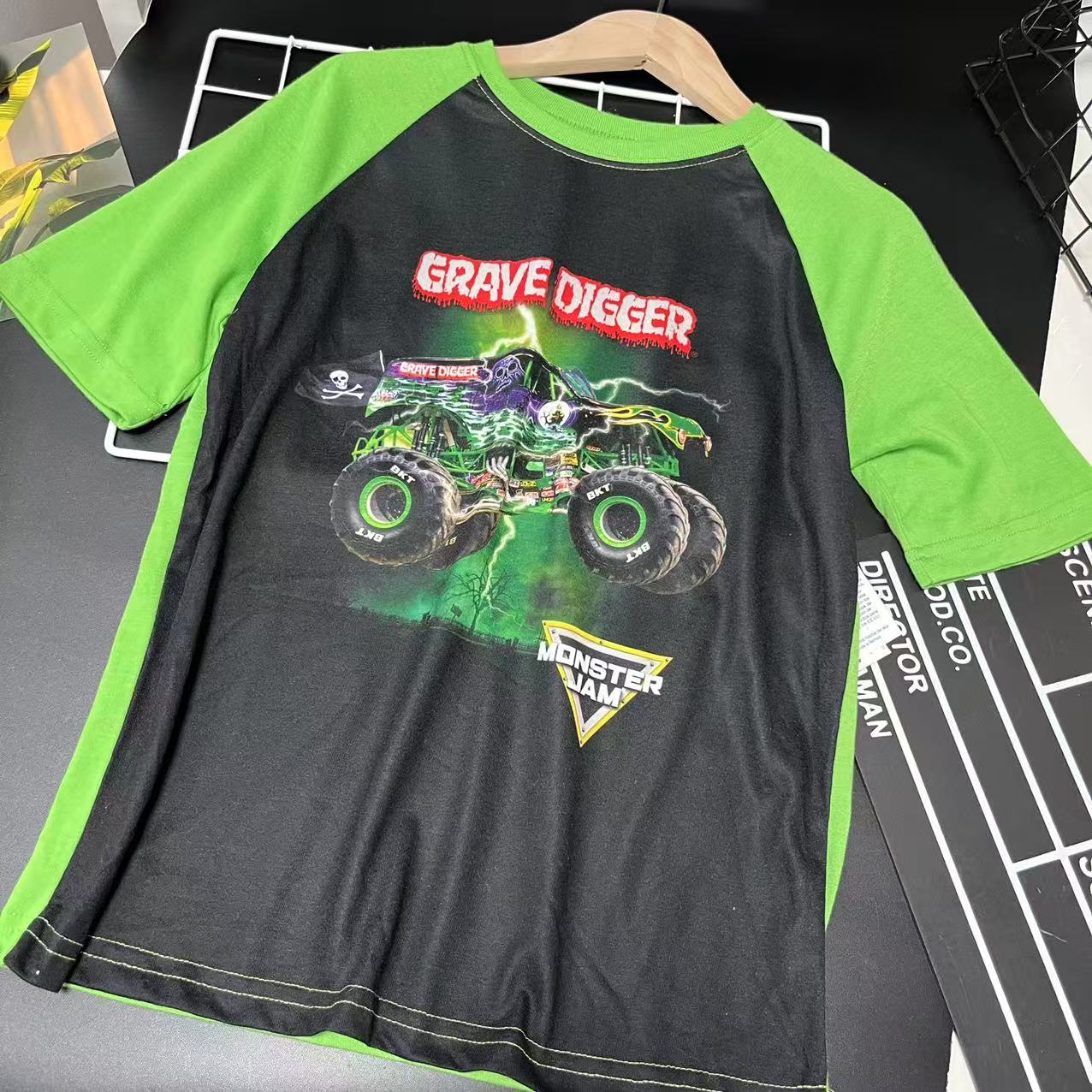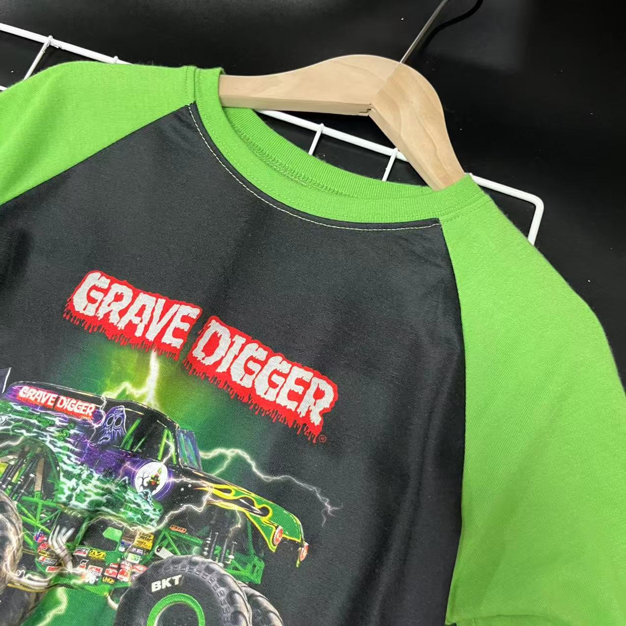 【选2件15元-NO退】10/12绿色拼黑汽车潮牌短袖-微脏-喜出