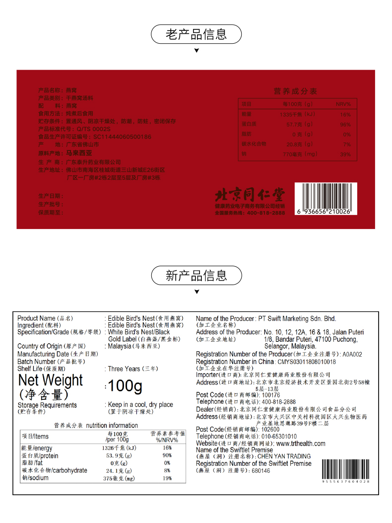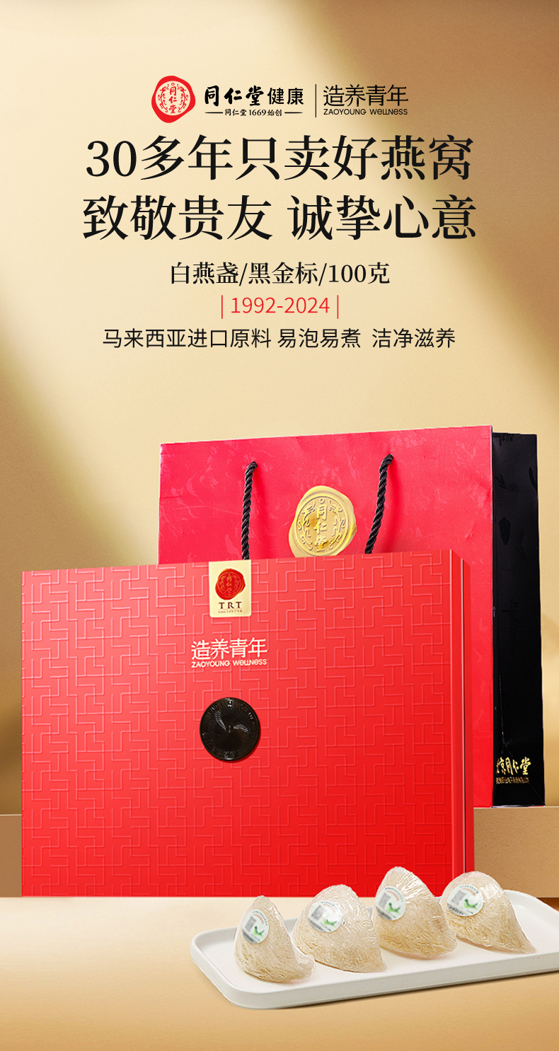 【正宗同仁堂品牌】北京同仁堂 马来西亚原产干燕窝(黑金标款)100克 可溯源 礼盒装 SY