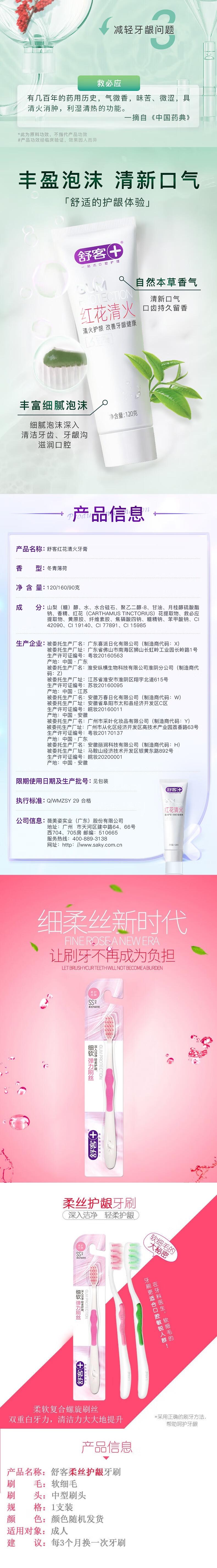 舒客 红花清火牙膏120g*3支+柔丝护龈牙刷1支 skyghr4e