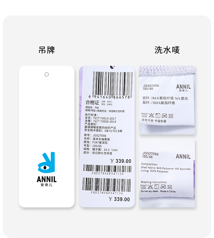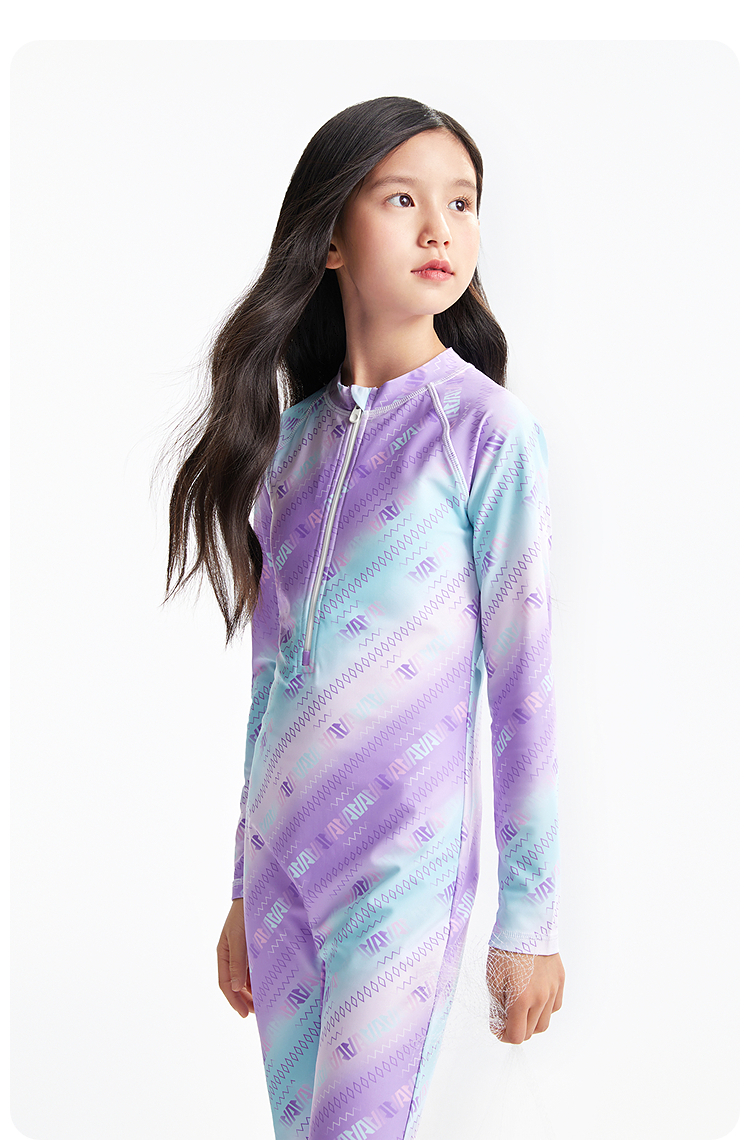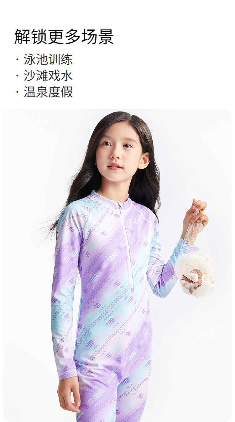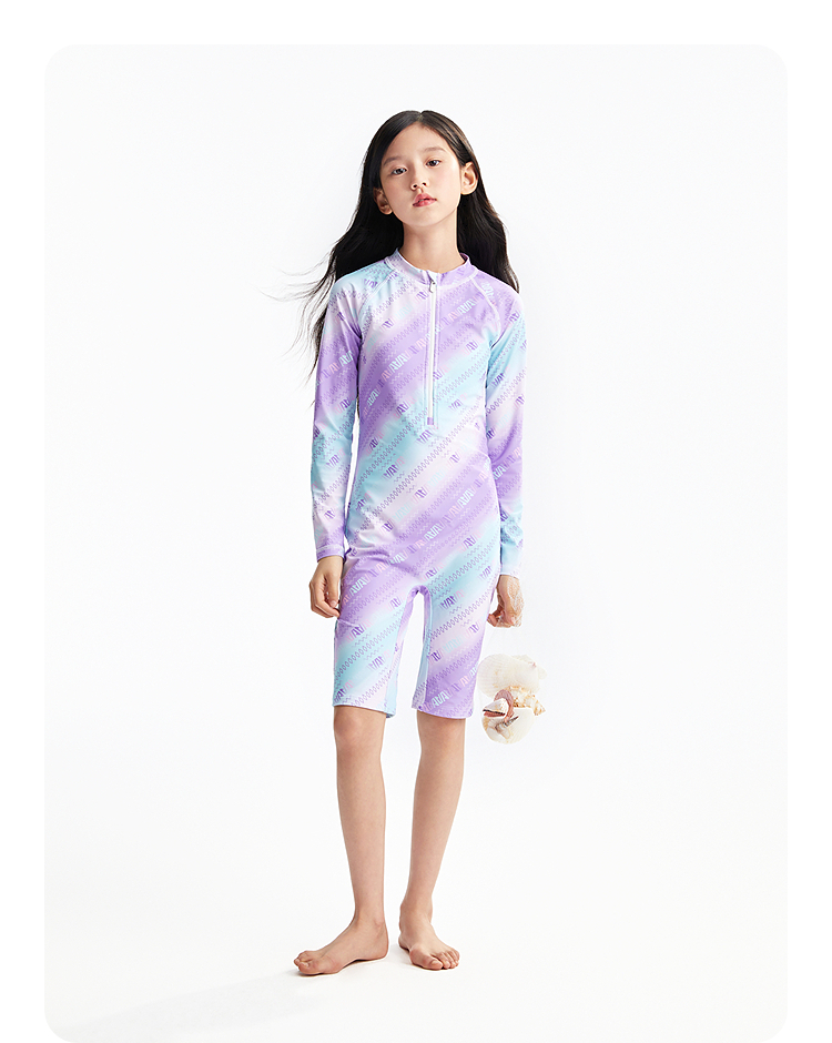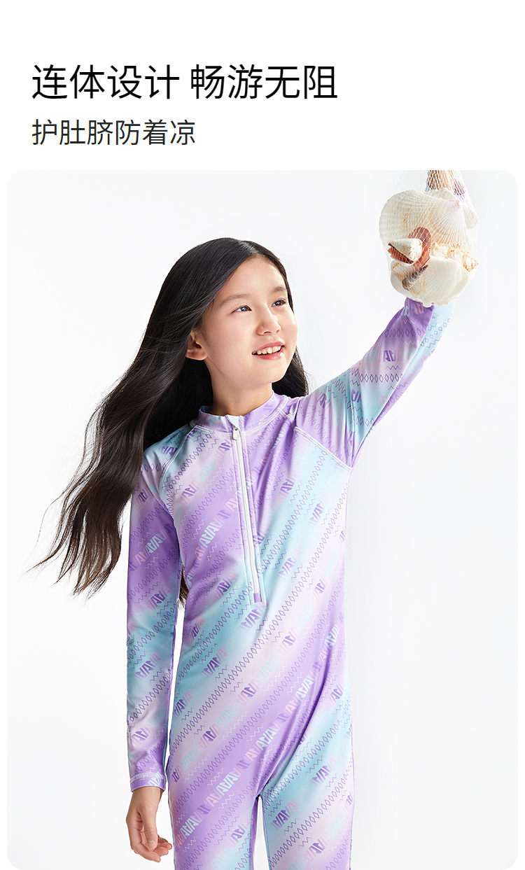 女童连体长袖泳衣套装夏季新款安奈儿童装JG527056