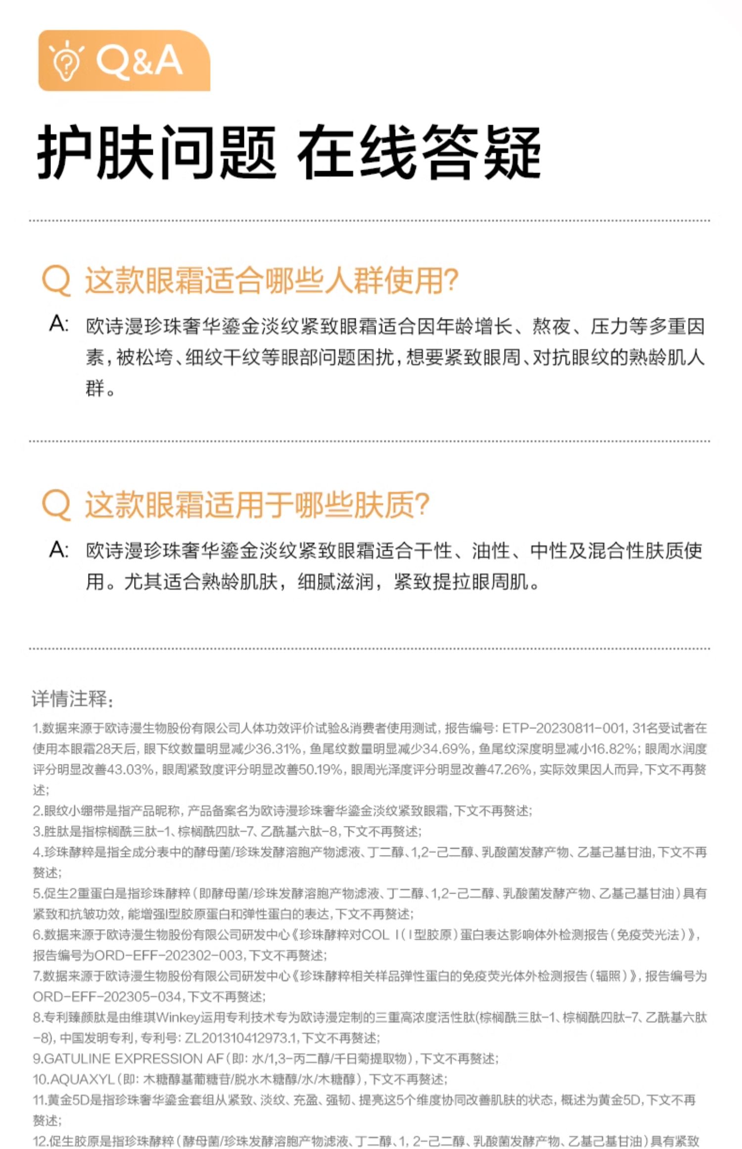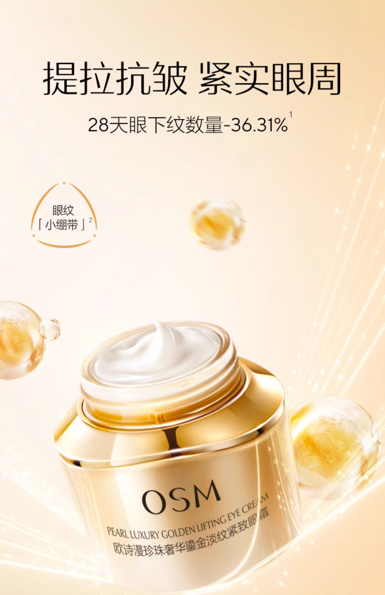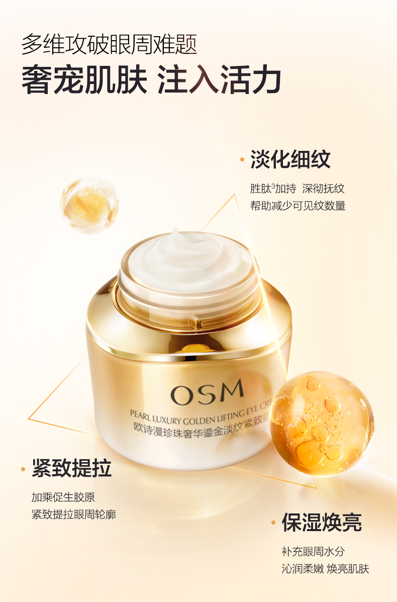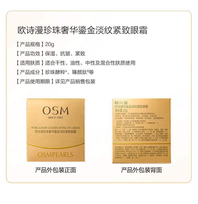 欧诗漫珍珠奢华鎏金淡纹紧致眼霜20g 淡化细纹 紧致提拉 保湿焕亮