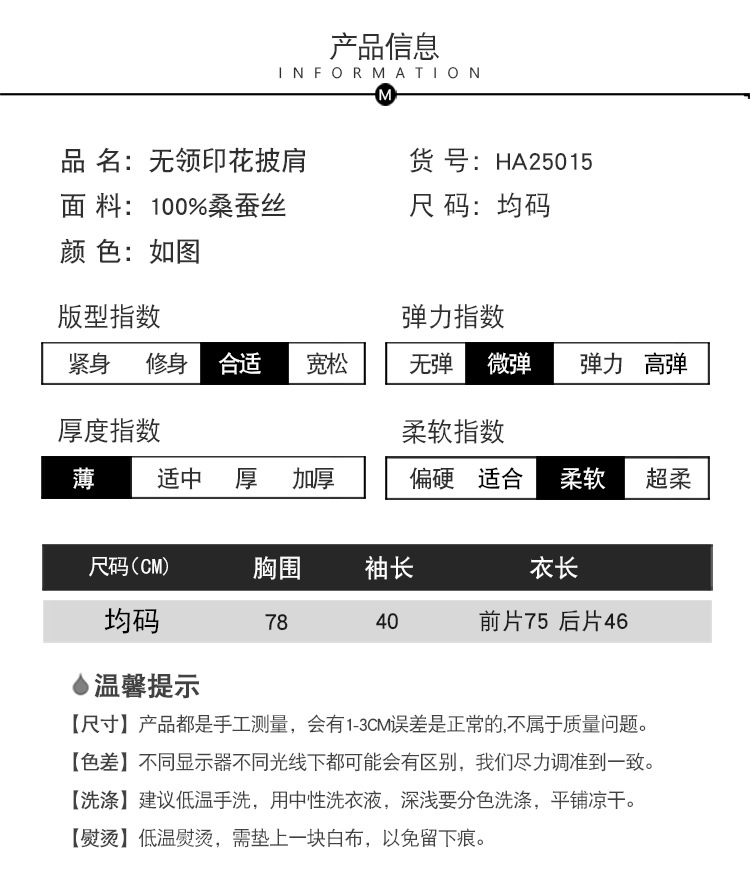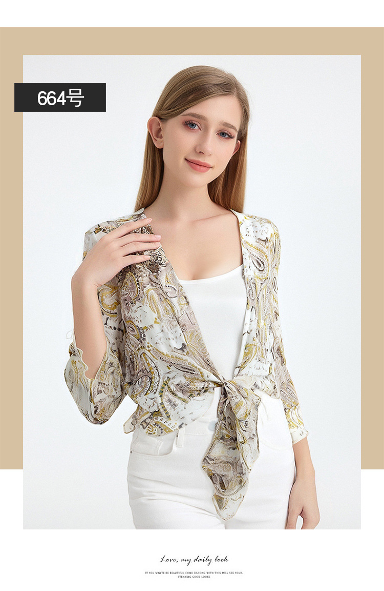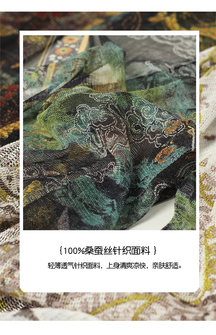 丁摩 真丝防晒衣印花披肩桑蚕丝网眼透气空调衫HA25015