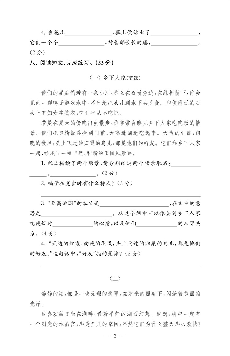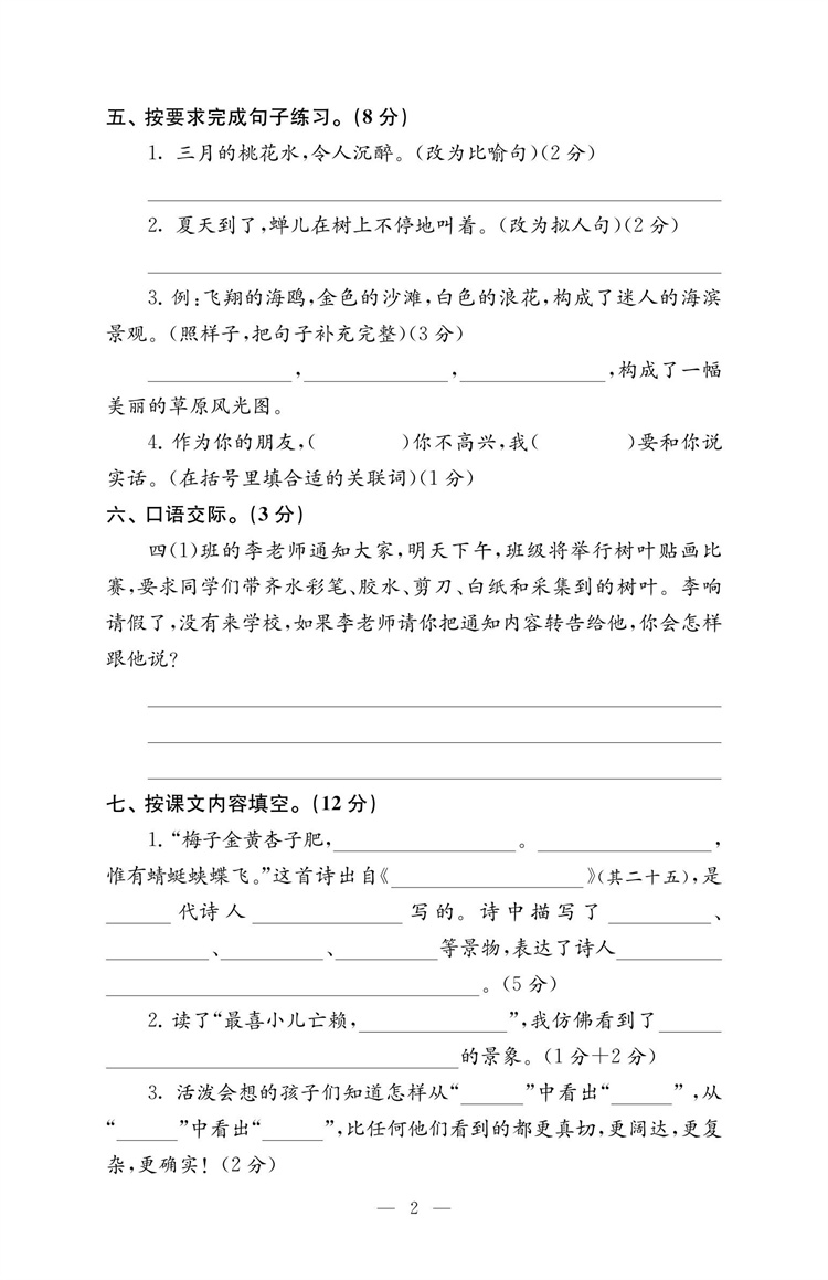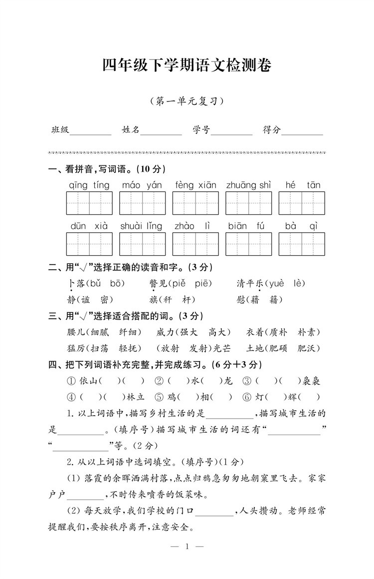 2025年春 练习与测试检测卷 小学语文四年级下册 同步人教版 部编版 语文课本 扫码获取答案 4下 江苏凤凰教育出版社