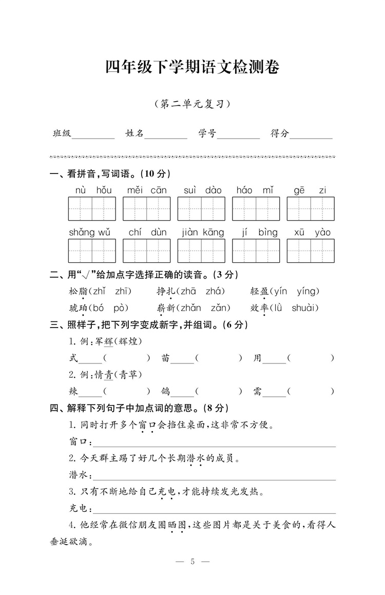 2025年春 练习与测试检测卷 小学语文四年级下册 同步人教版 部编版 语文课本 扫码获取答案 4下 江苏凤凰教育出版社 商品缩略图0 2025年春 练习与测试检测卷 小学语文四年级下册 同步人教版 部编版 语文课本 扫码获取答案 4下 江苏凤凰教育出版社 商品缩略图1 2025年春 练习与测试检测卷 小学语文四年级下册 同步人教版 部编版 语文课本 扫码获取答案 4下 江苏凤凰教育出版社 商品缩略图2 2025年春 练习与测试检测卷 小学语文四年级下册 同步人教版 部编版 语文课本 扫码获取答案 4下 江苏凤凰教育出版社 商品缩略图3