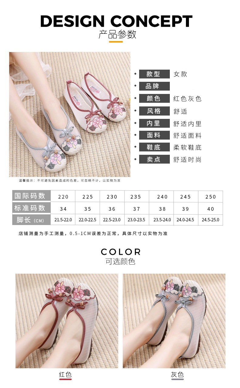 平底古风网纱凉鞋,透气网面绣花鞋民族风汉服鞋MY-S2