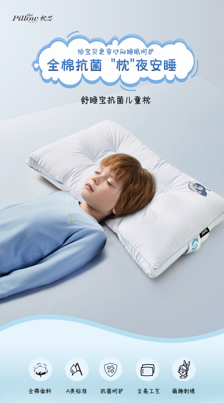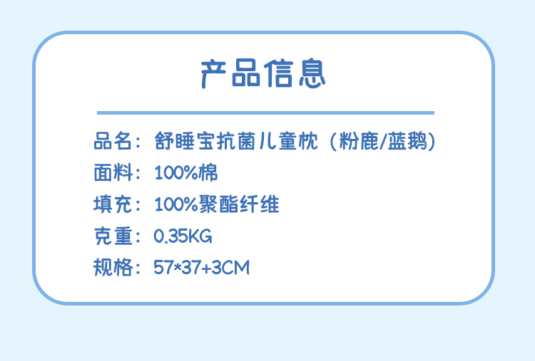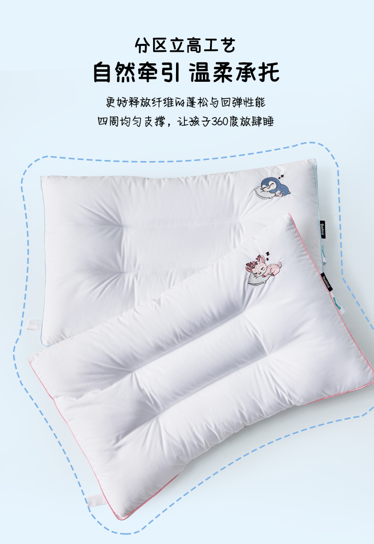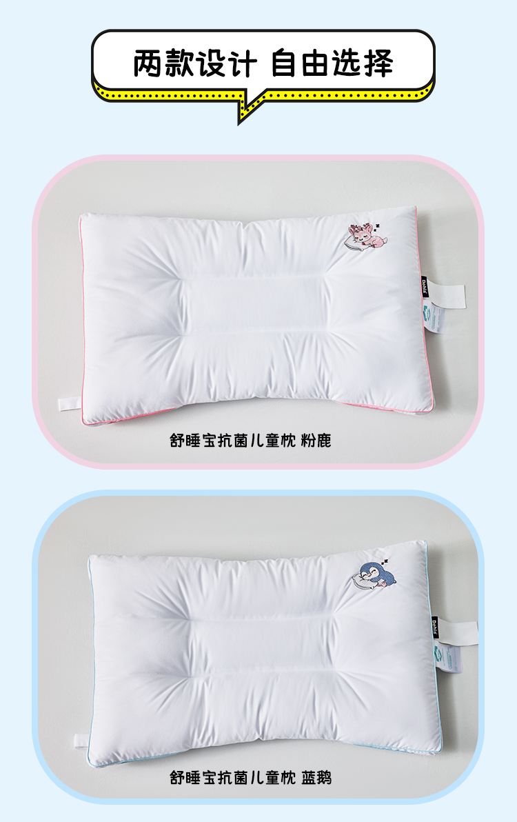 【线下同款】适合6岁以下娃娃 多喜爱 舒睡宝抗菌儿童枕芯(蓝鹅/粉鹿)【全棉抗菌】【A类标准】【抗菌呵护】【立高工艺】【萌趣刺绣】三维螺旋纤维蓬松性更好/FX
