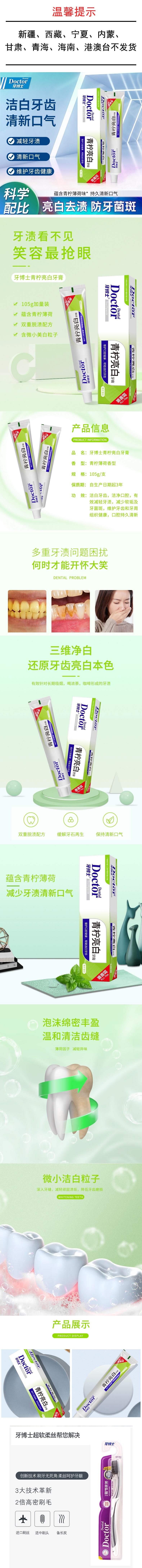 牙博士 青柠亮白牙膏105g*2 6924431415926-2