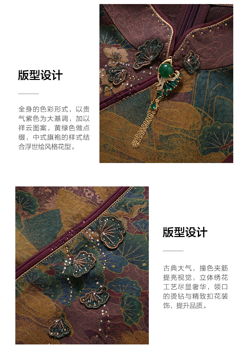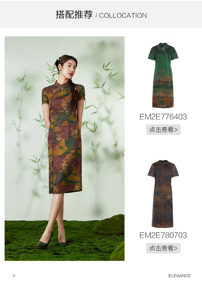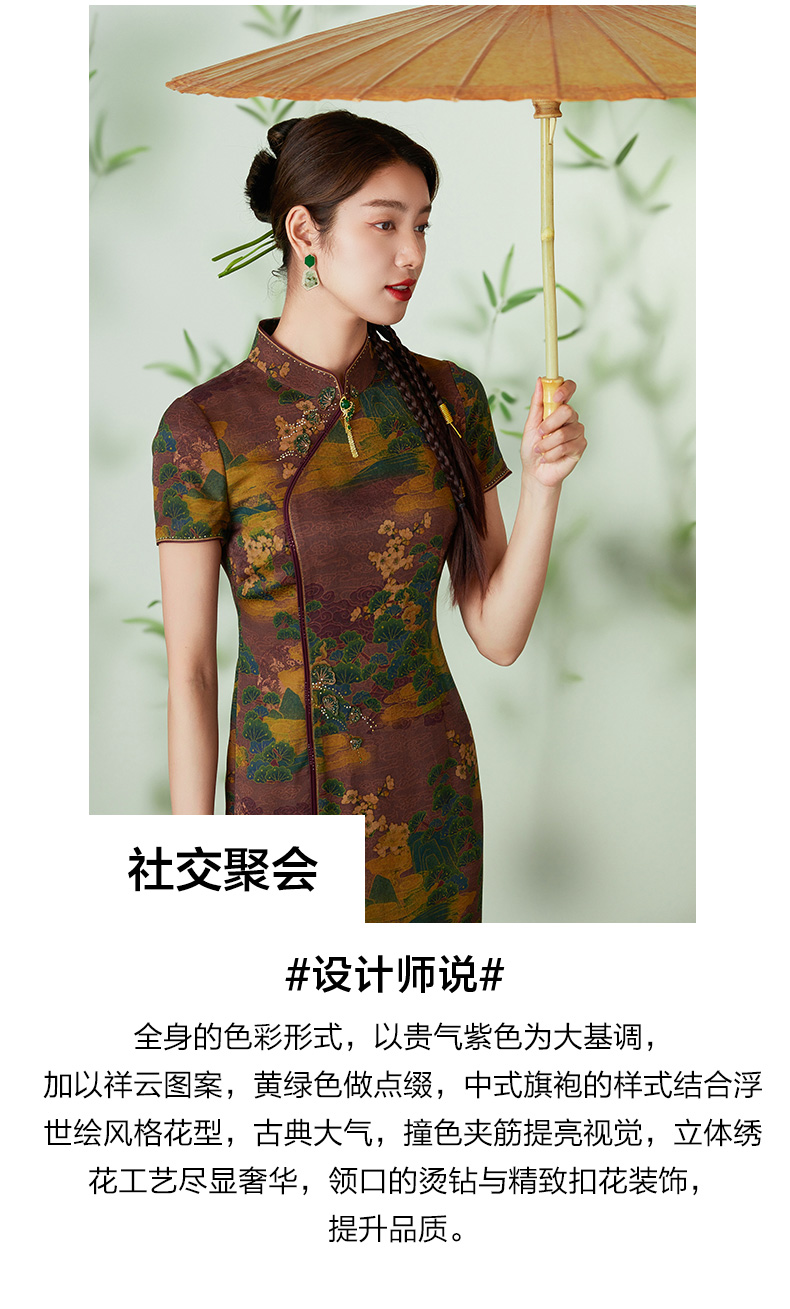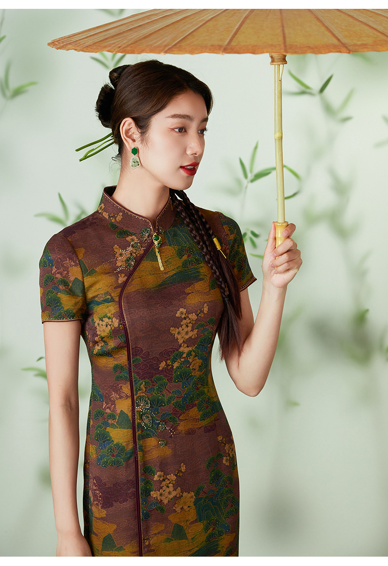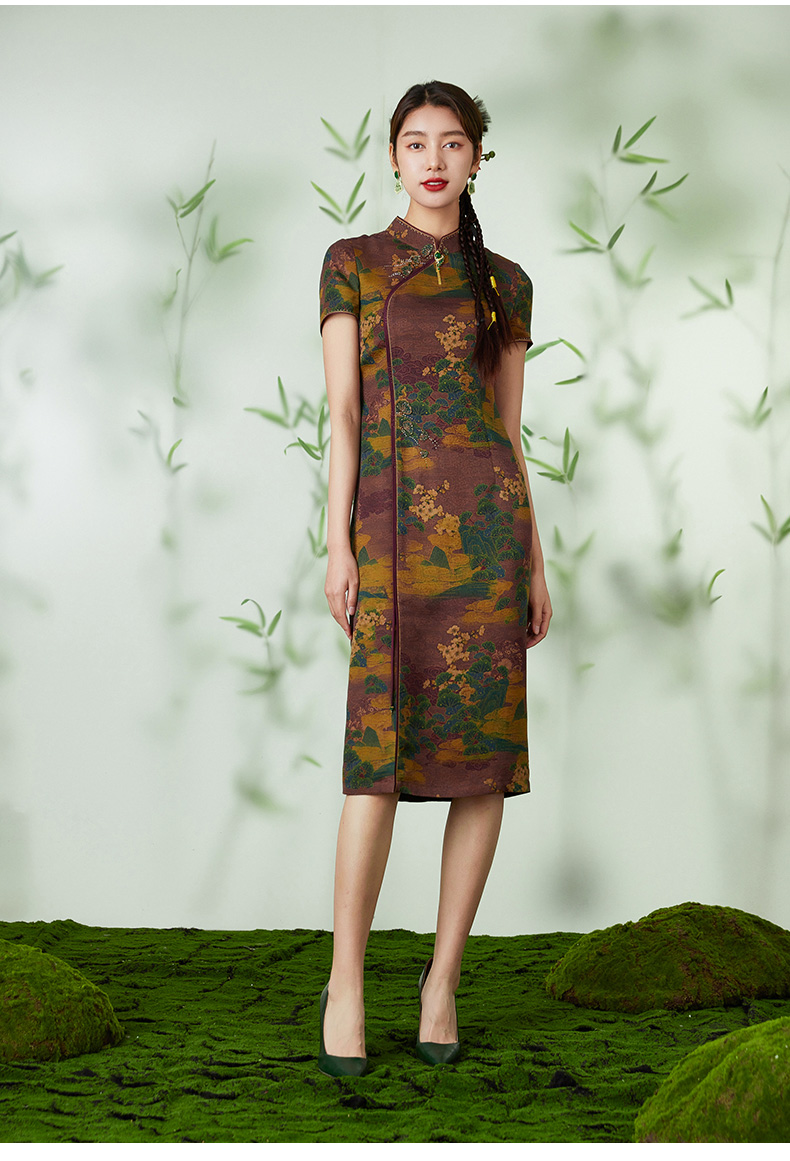 【浮世绘】【香云纱】乔万尼24mm重磅真丝连衣裙复古祥云设计EM2E796