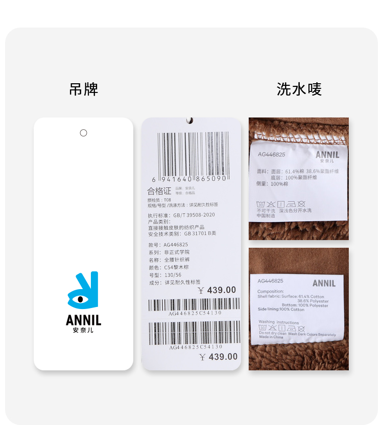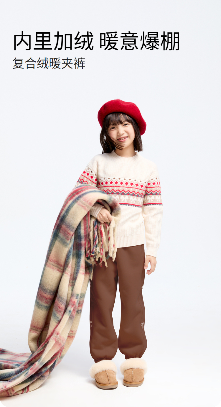 【实体店同款】女童复合绒暖夹裤厚裤子冬季新款安奈儿童装AG446825