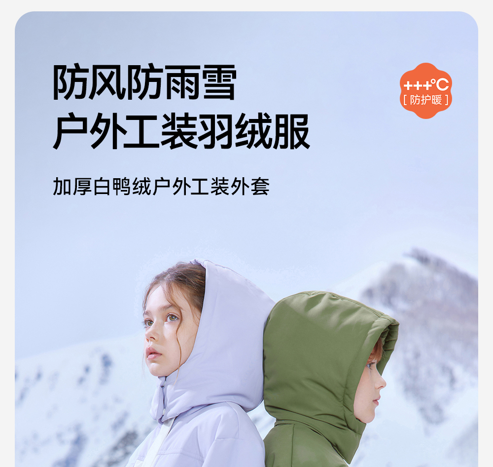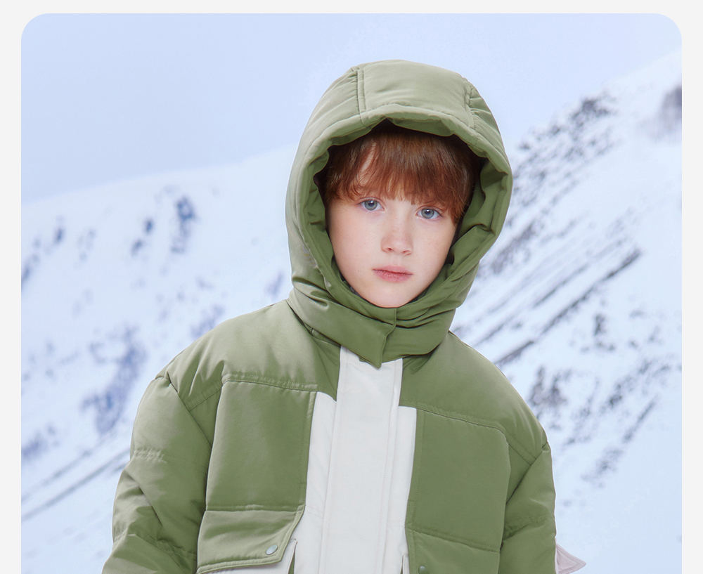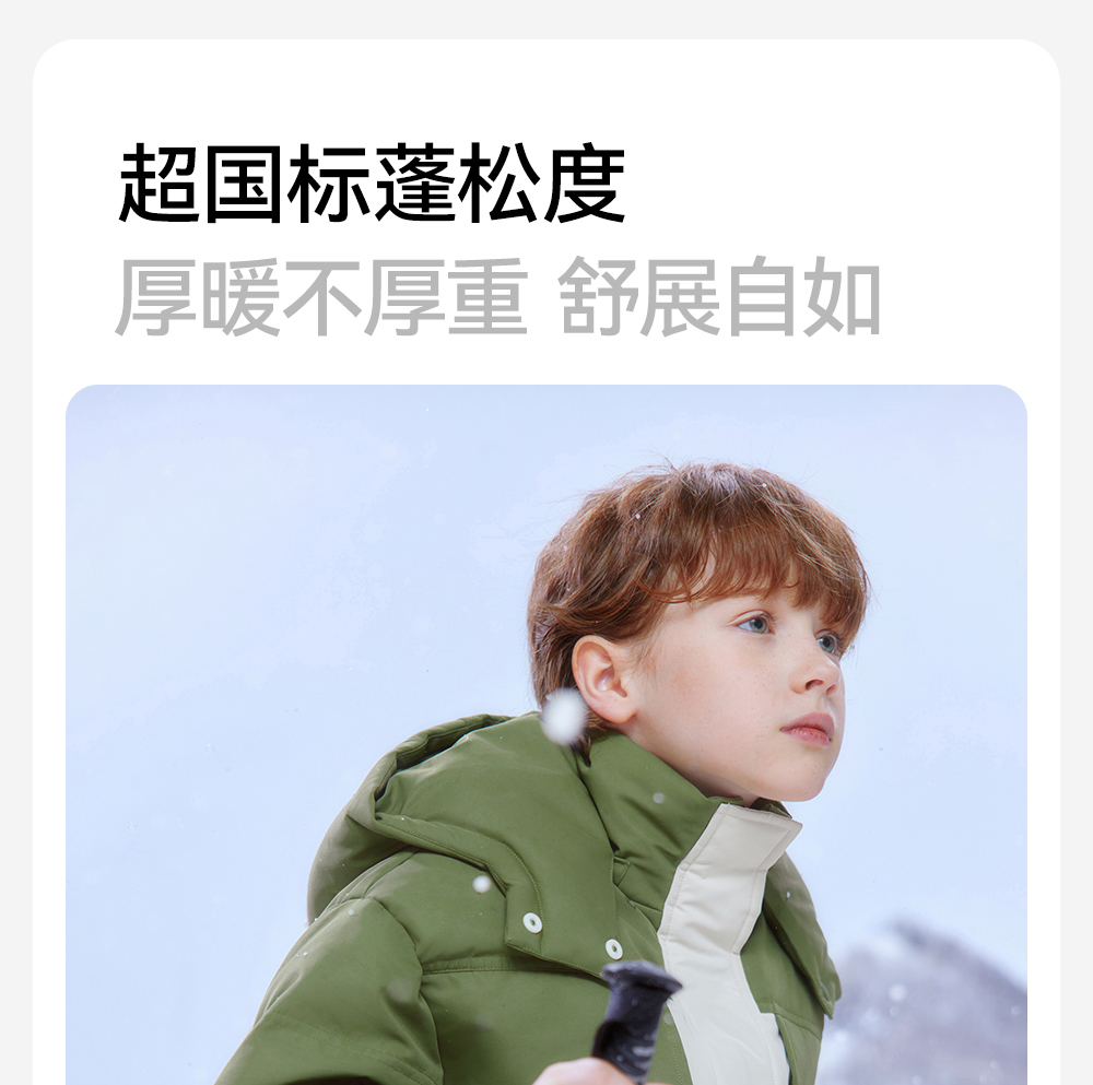 英氏儿童羽绒服冬季保暖连帽羽绒外套中大童防寒羽绒服超韧绒