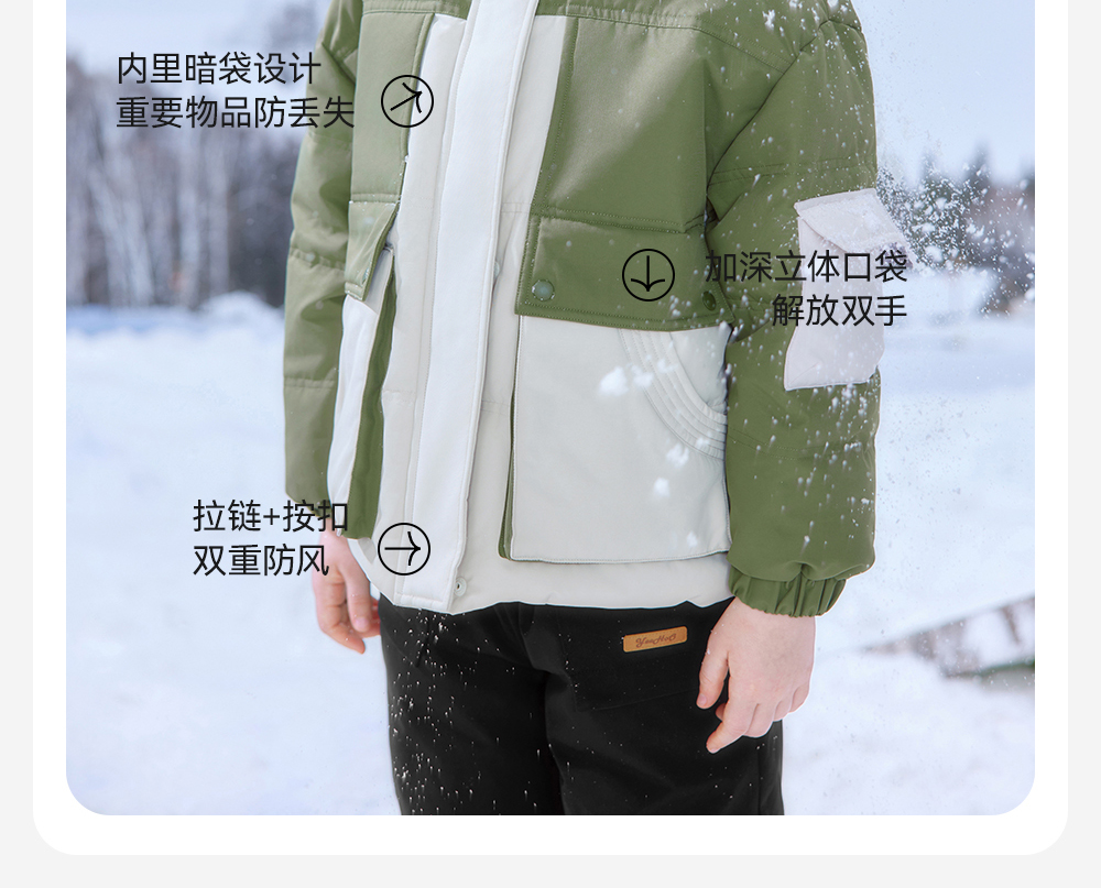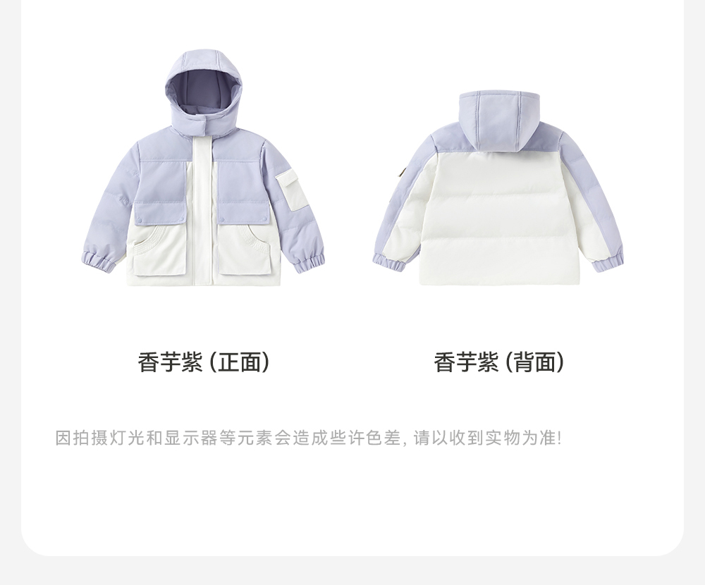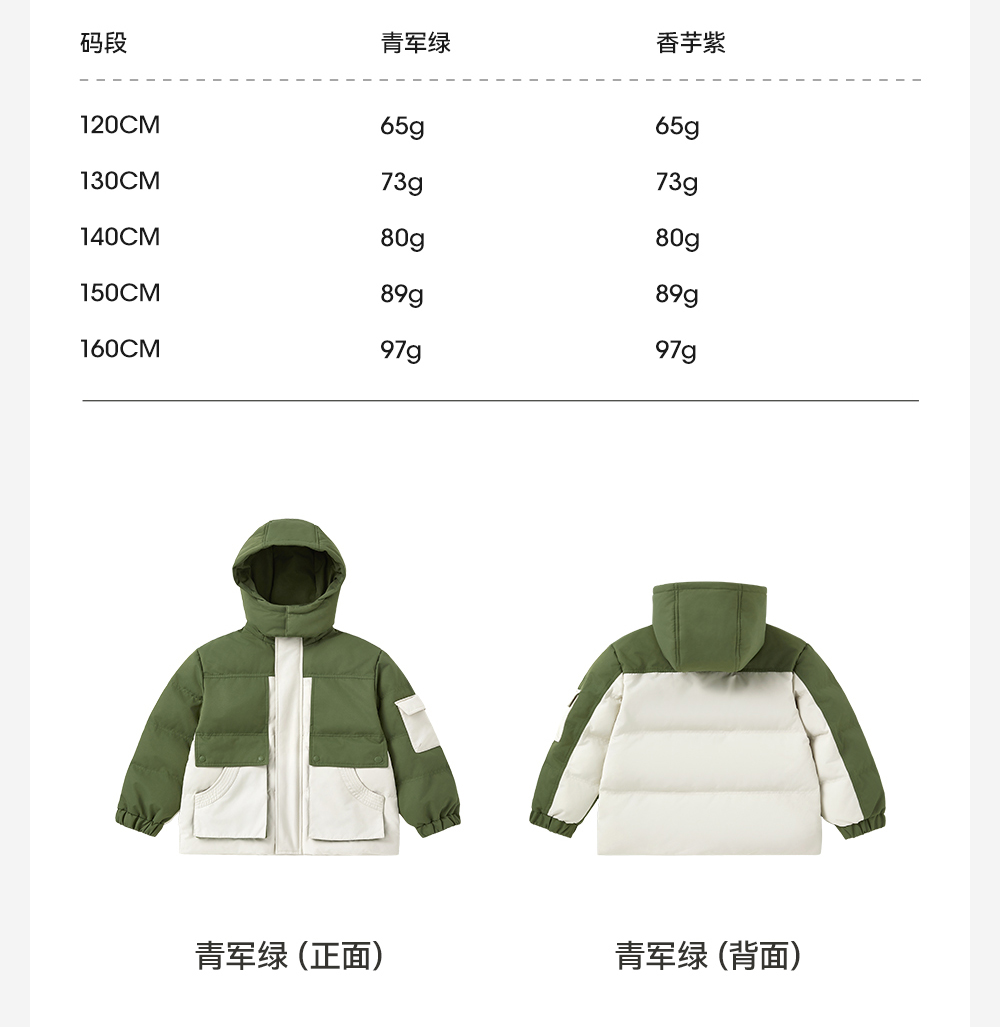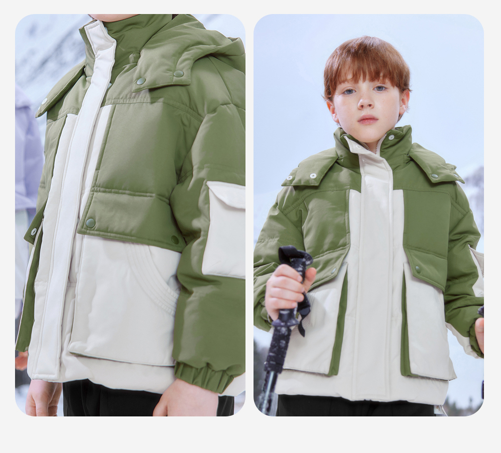 英氏儿童羽绒服冬季保暖连帽羽绒外套中大童防寒羽绒服超韧绒