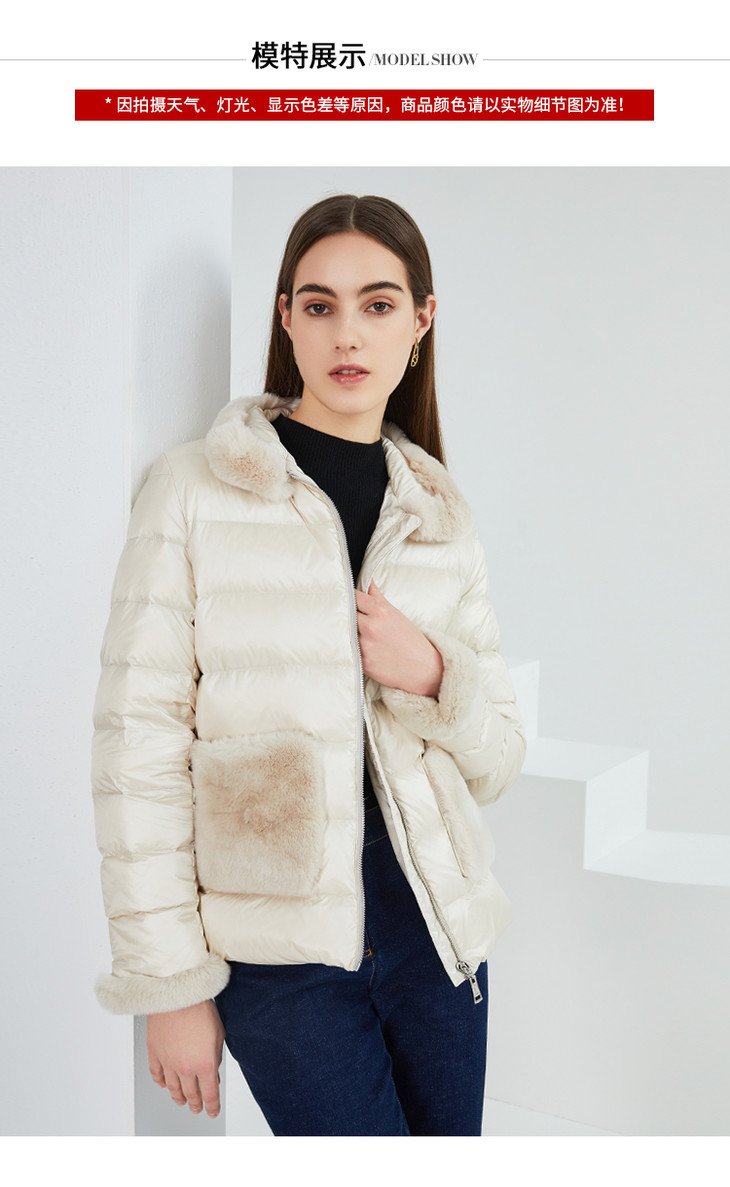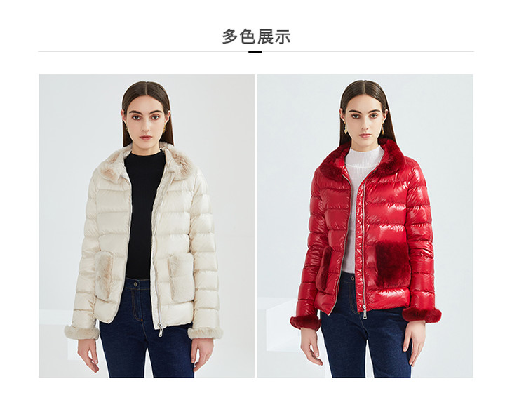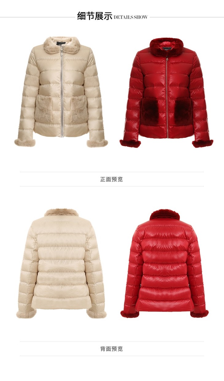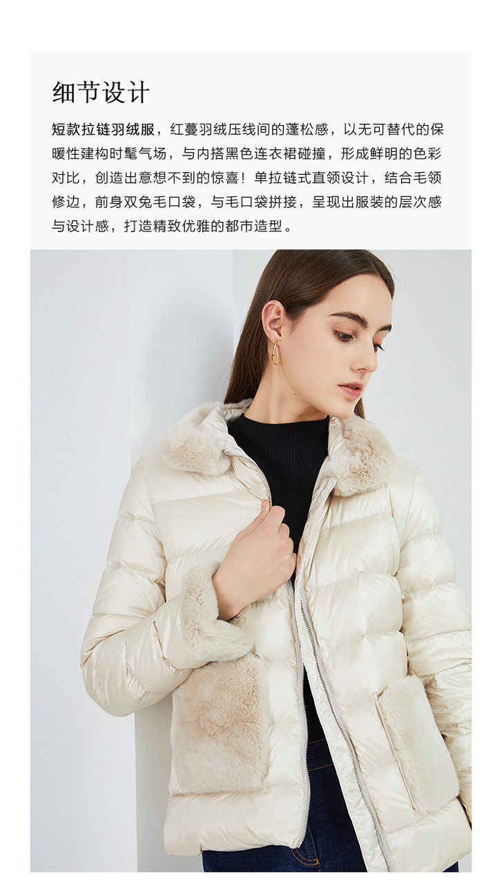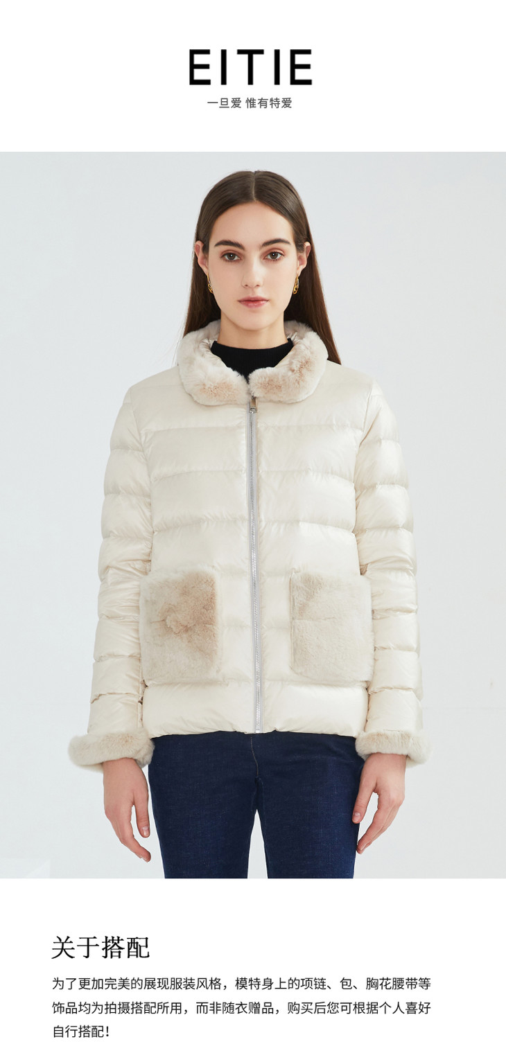 故障 EITIE爱特爱冬季新款保暖兔毛立领洋气显瘦短款外套羽绒服女6411106