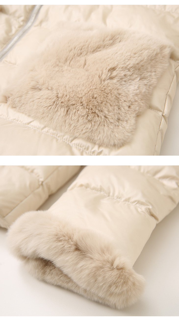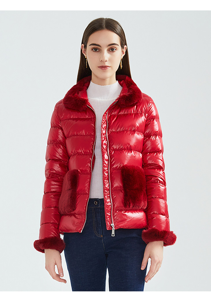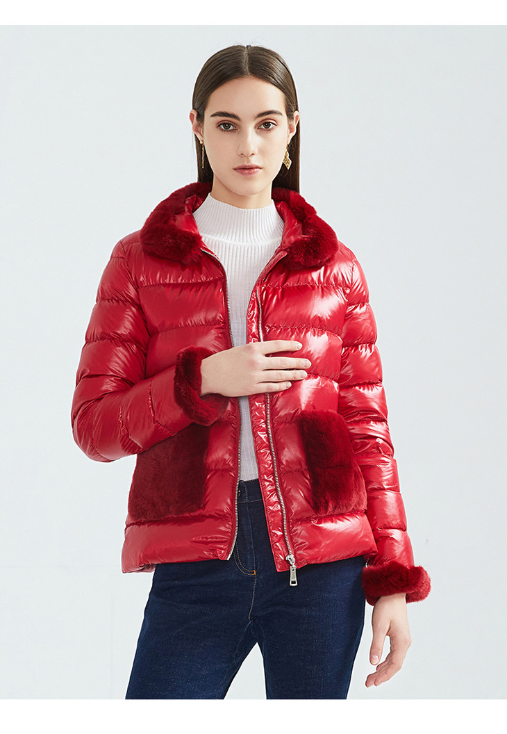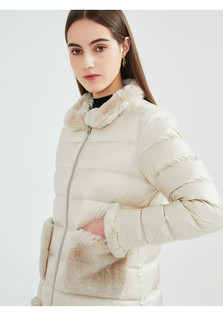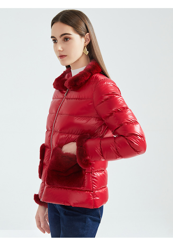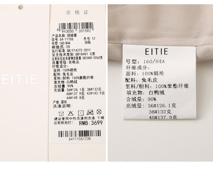 故障 EITIE爱特爱冬季新款保暖兔毛立领洋气显瘦短款外套羽绒服女6411106
