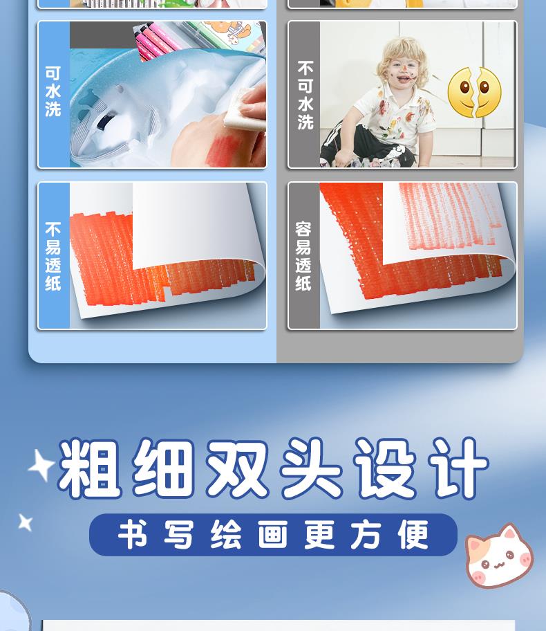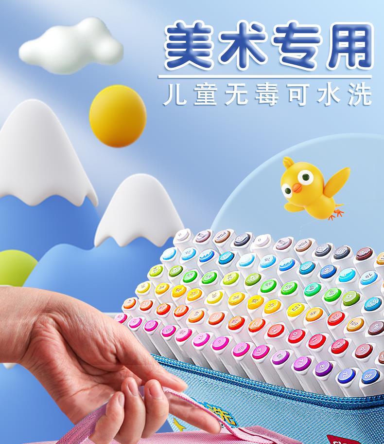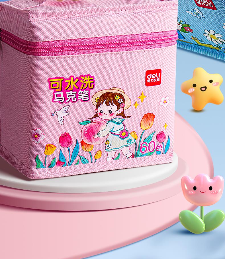 得力马克笔双头儿童可水洗学生水彩笔专用水性小学生24色套装批发