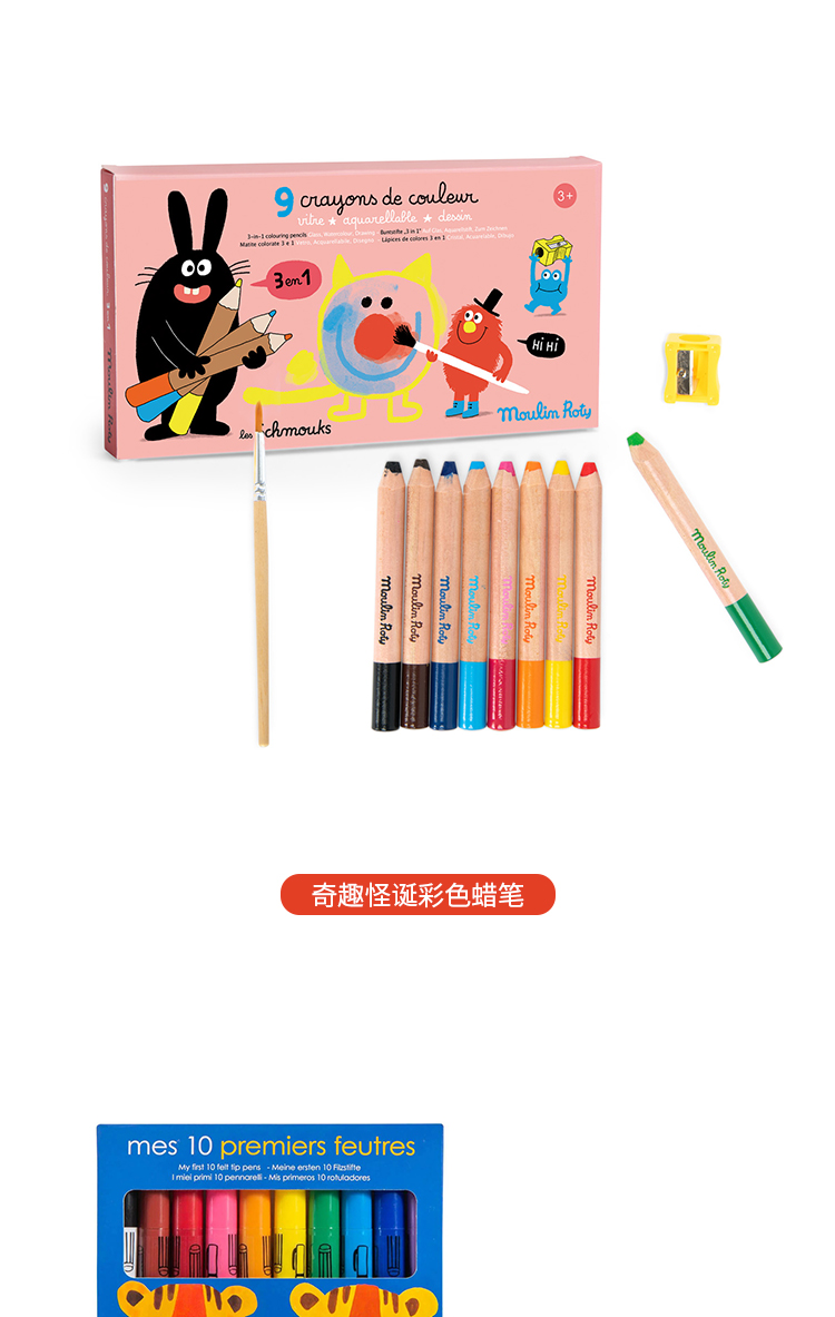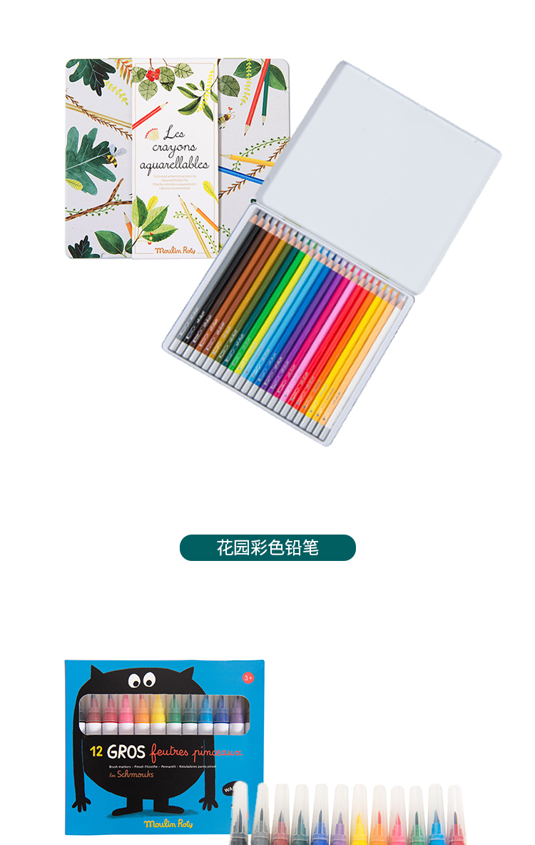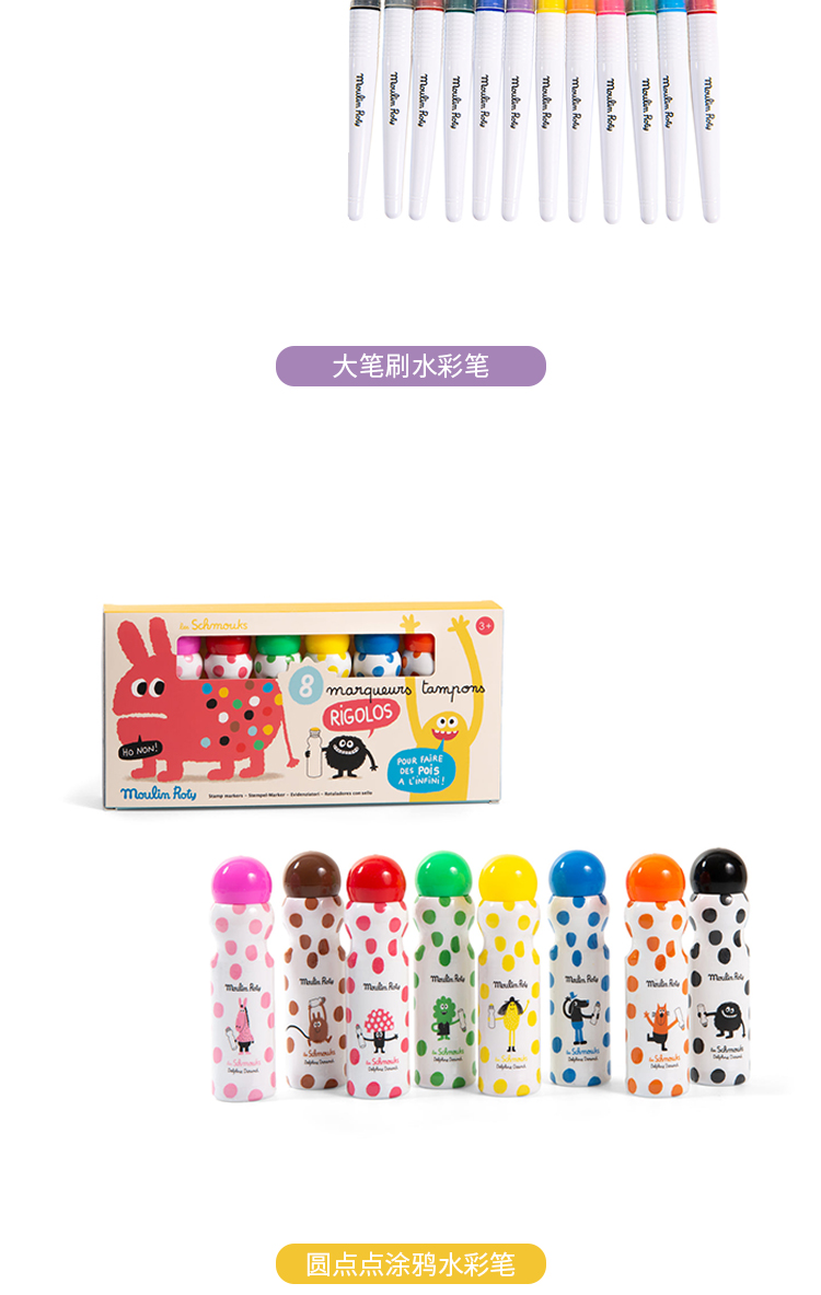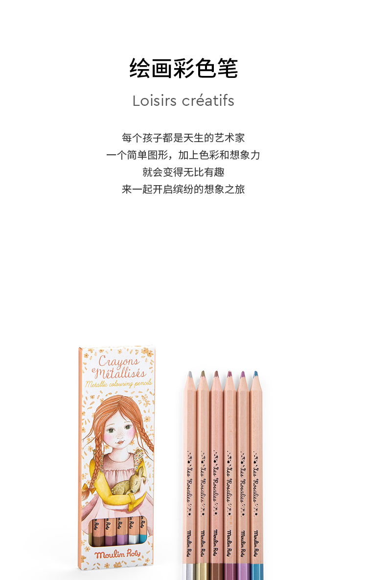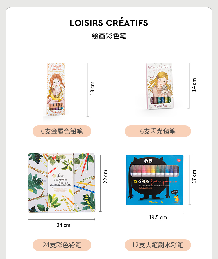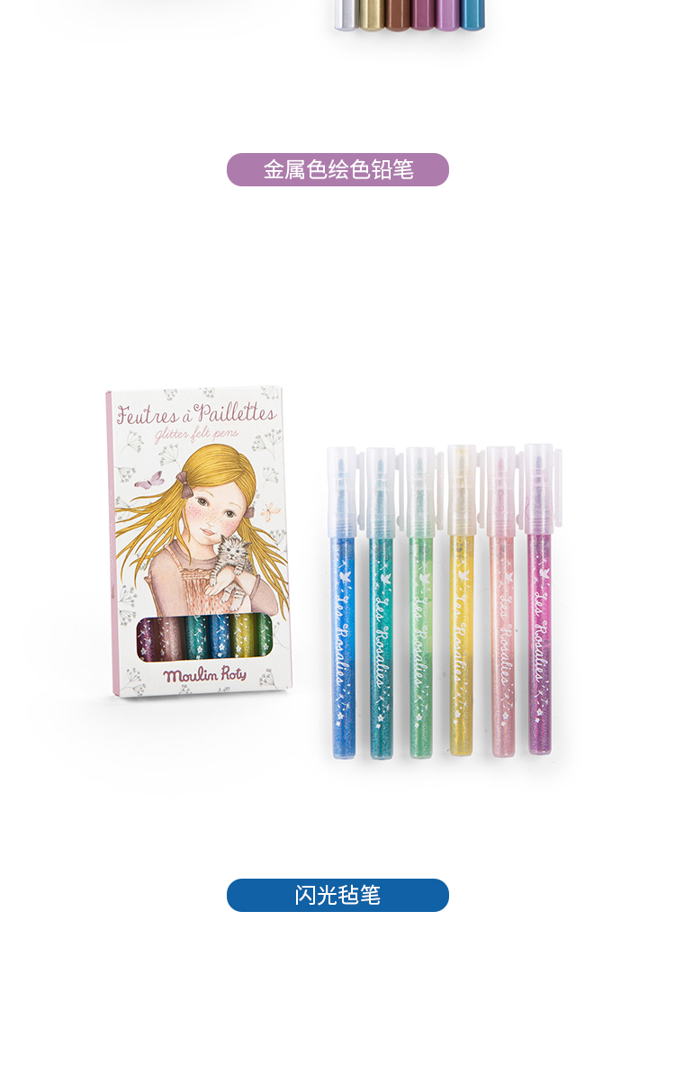 Moulin Roty 闪光毡笔 适合3岁以上 高质量美术工具 不同用法的笔头 法国品牌-710608