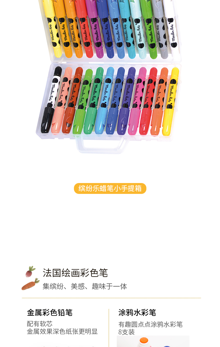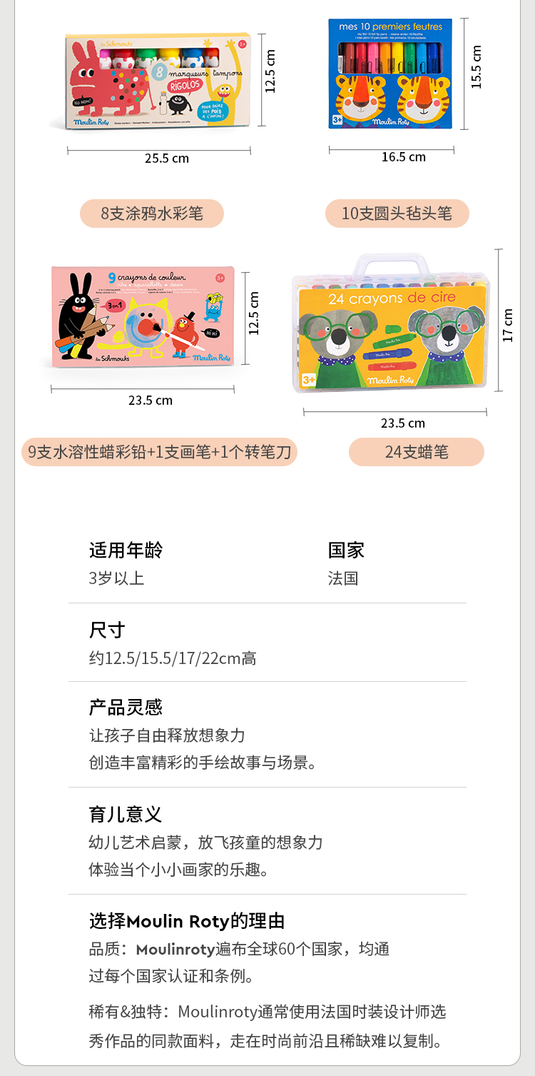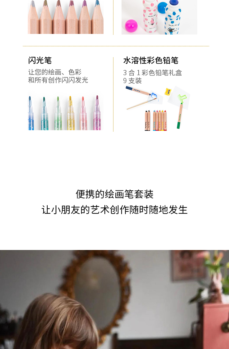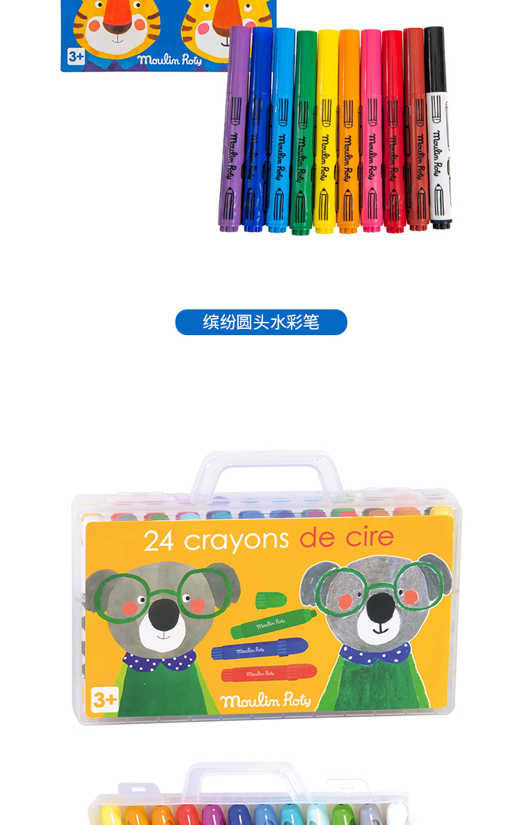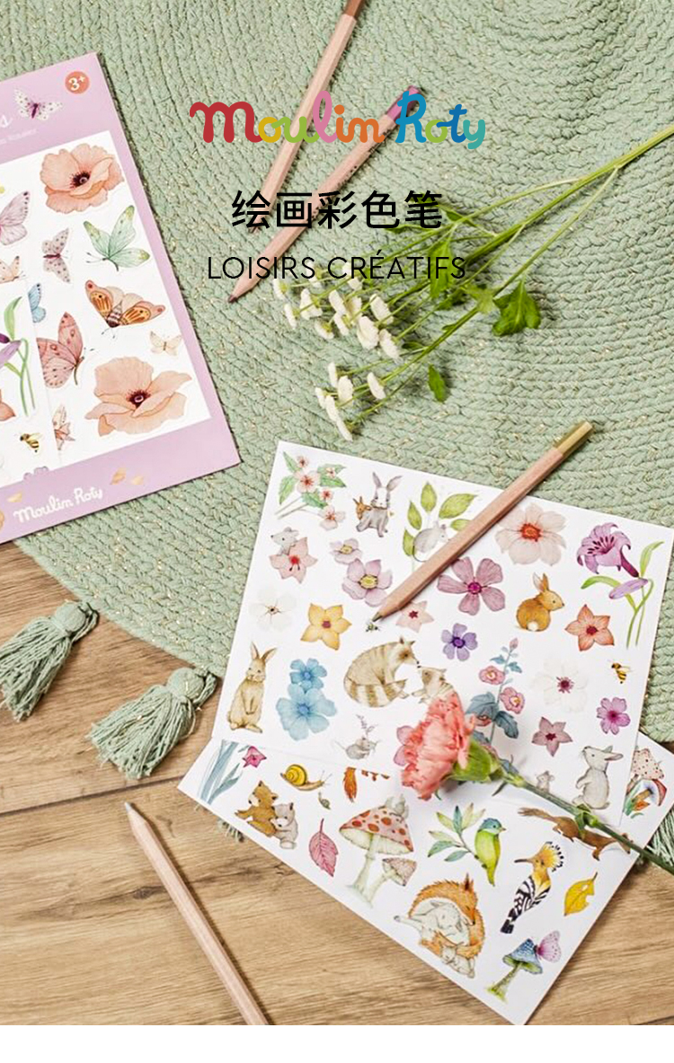 Moulin Roty 闪光毡笔 适合3岁以上 高质量美术工具 不同用法的笔头 法国品牌-710608