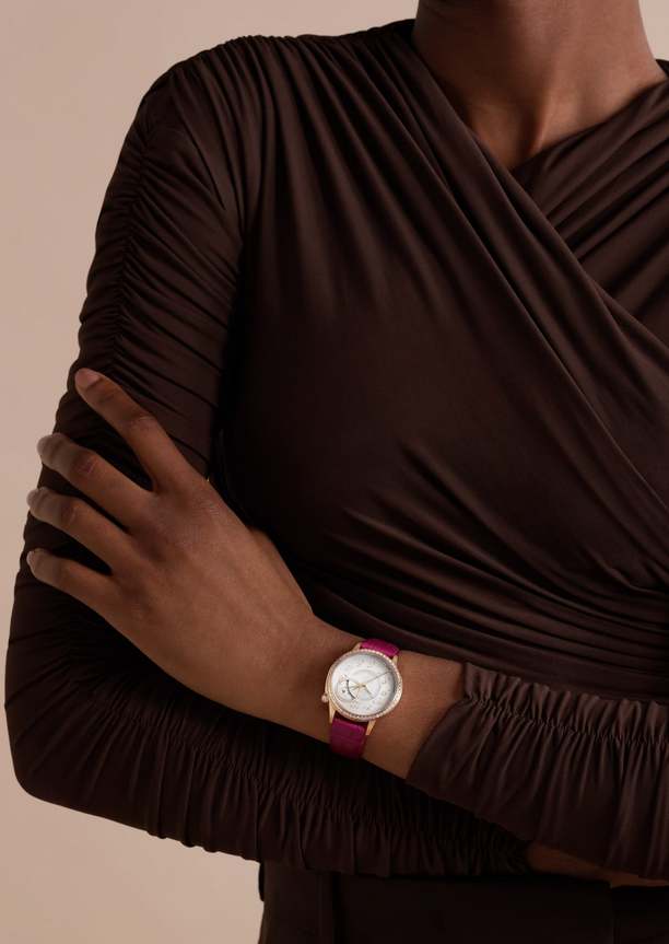 | 防水 | 30 m | 表带 | 粉红色/深棕色/深蓝色三条可替换的鳄鱼皮表带 针扣 |