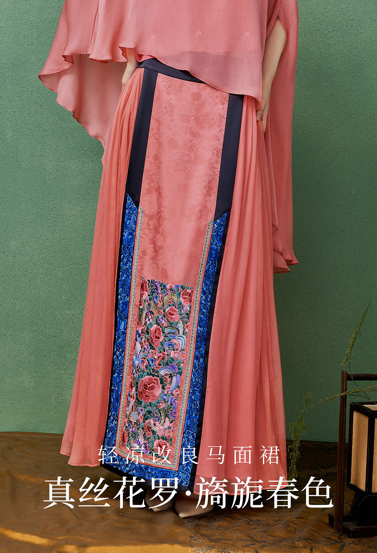 【林栖设计小店】真丝罗改良轻凉马面裙多色绣花国潮2025春季新品半身裙女1951130